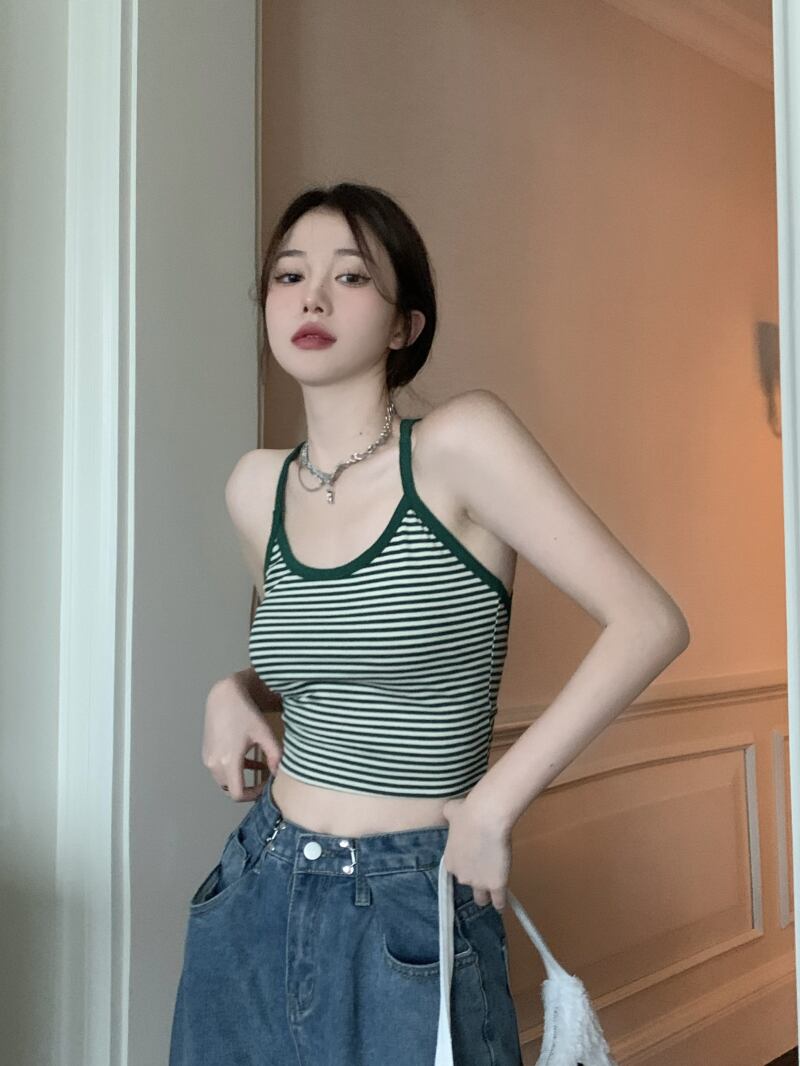純粋な欲望セクシーなストライプキャミソール女性の夏の甘いボトミングシャツバックレスノースリーブインナートップアウターウェア 大人ガーリー スウィート キュート カジュアル サマー 夏物 bstraw19836824760 | beaute25