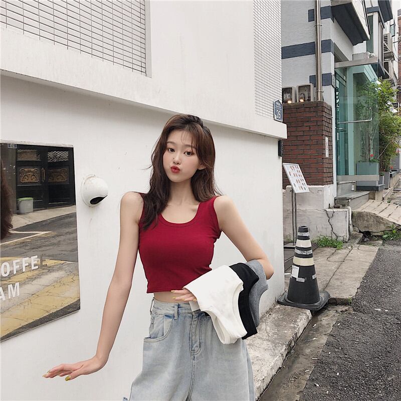 夏には、短いスポーツのHyunaネットの赤いベストサスペンダーを着用し、女性はへそをむき出しのスリムなボトミングシャツ、流行のトップスを着用します ショート レッド サマー 夏物 bstraw70738051378 | beaute25