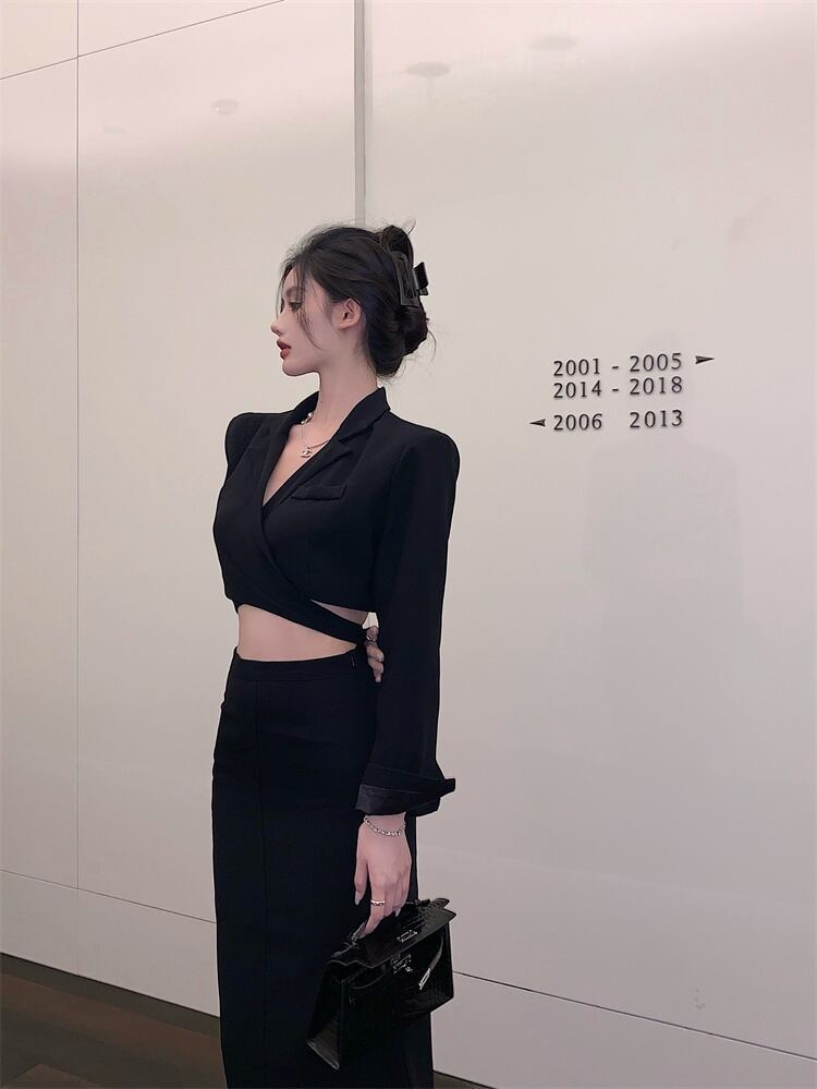 色:黒いスーツ,黒スカート