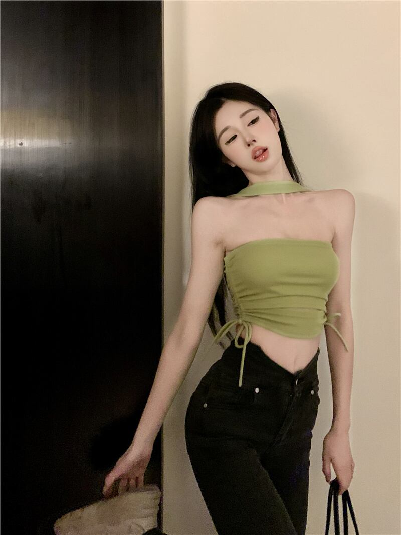 緑の巾着純粋な欲望キャミソールスモールベスト女性インスーパーサマーハンギングネックタイトボトミングトップスとアウターウェアを着用 夏物 ピュア グリーン bstraw78388662836 | beaute25
