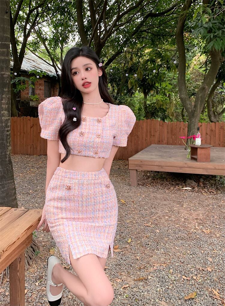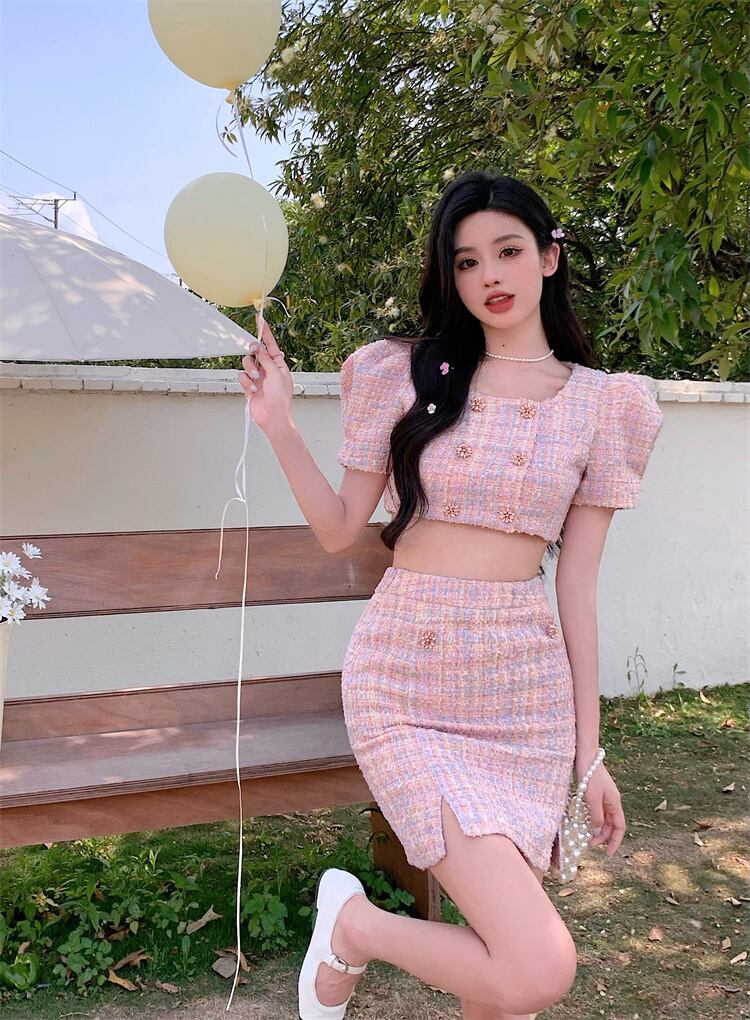 Xiaoxiangfeng気質ファッションスーツ女性の夏のピンクの甘いショートコートトップパッケージヒップスカートツーピースセット 大人ガーリー スウィート キュート カジュアル サマー 夏物 bstraw96984180455 | beaute25