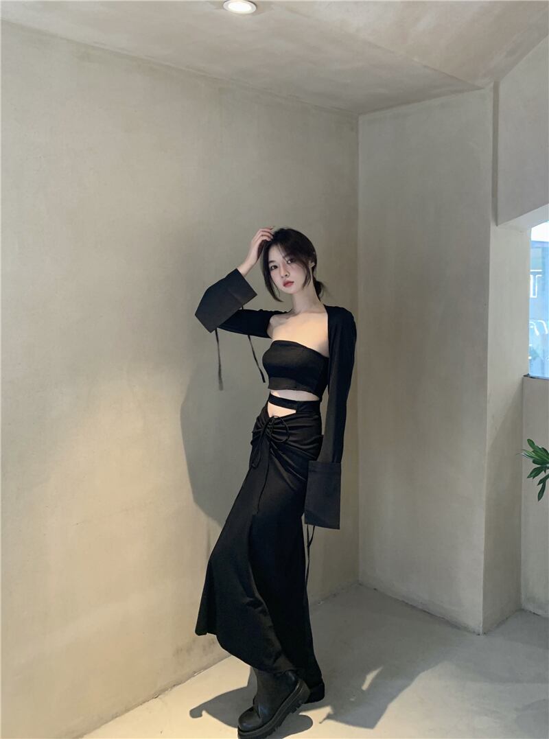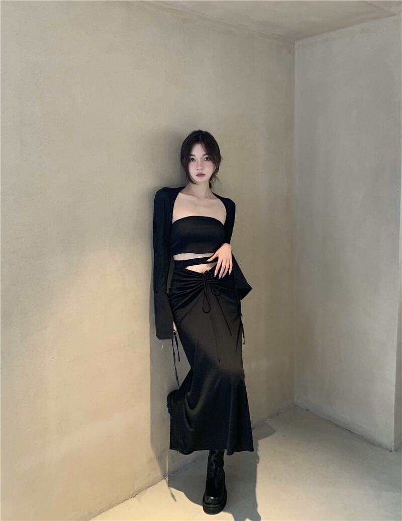 ブラックドローストリングレースアップスカートレディースウエストセクシースリムホローアウトレットバッグヒップミドルスカートサマーニットスカート 夏物 bstraw87927526536 | beaute25