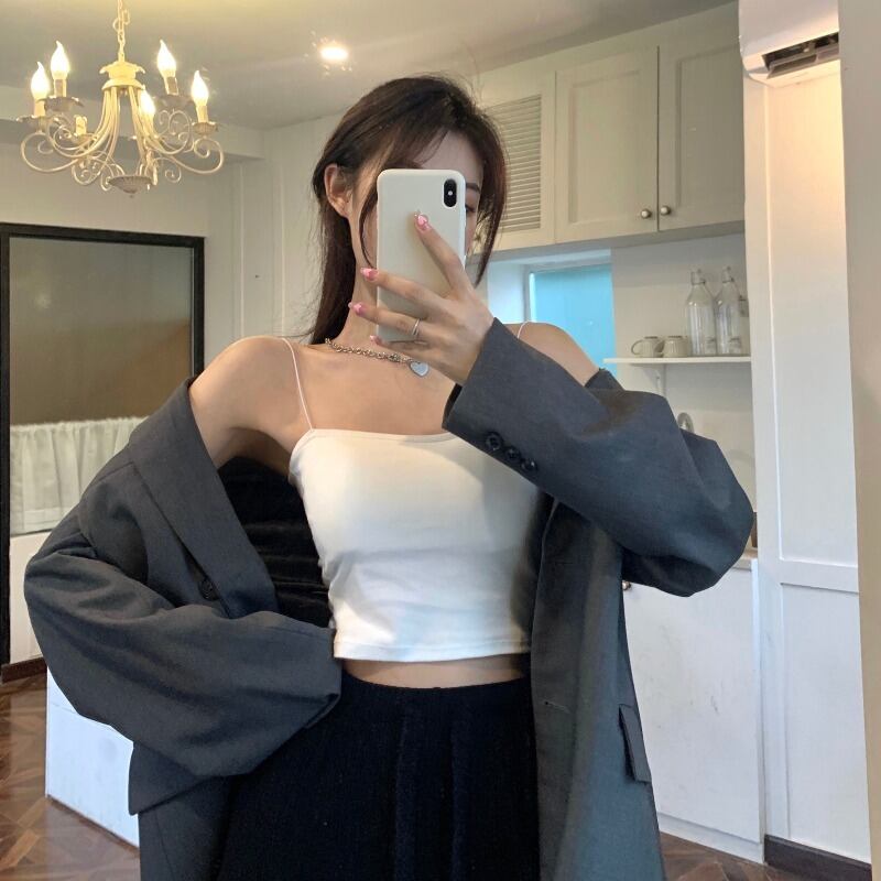 キャミソールベストレディースサマーショートスリムフィットヨーロッパとアメリカのセクシーなタイトフィットの白いアウターウェアインナーボッティング美しいバックトップ ホワイト 夏物 ヨーロピアン bstraw63950746351 | beaute25