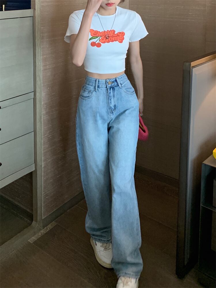 レトロウォッシュドジーンズレディースサマーインタイドブルーパンツハイウエストワイドレッグストレートスリムモップパンツ ハイウェスト 夏物 ワイドパンツ bstraw34481785220 | beaute25