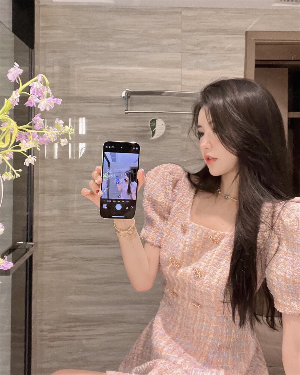Xiaoxiangfeng半袖ドレス女性の夏の甘くて優しい気質スクエアカラーウエストスリミング一言初恋ショートスカート 大人ガーリー スウィート キュート カジュアル サマー 夏物 スクウェア bstraw89457284617 | beaute25