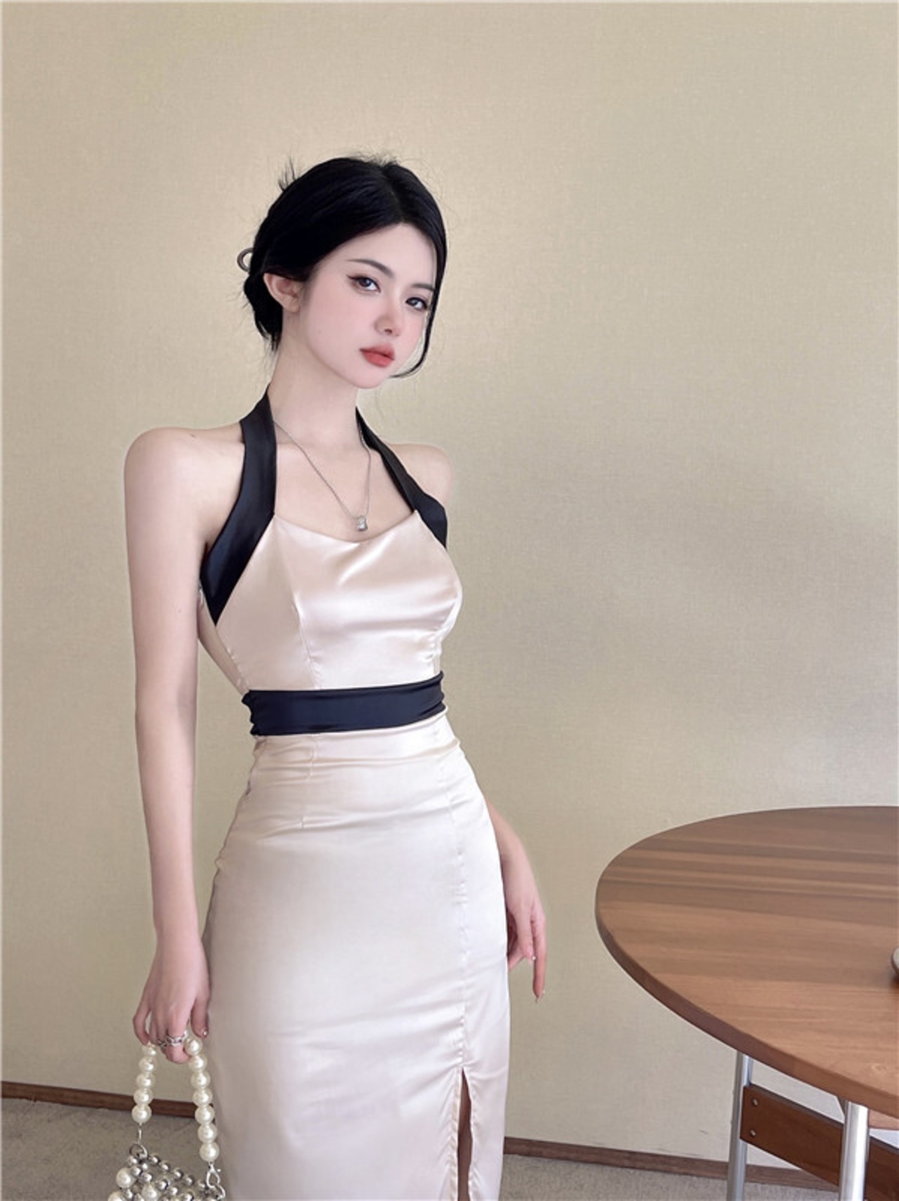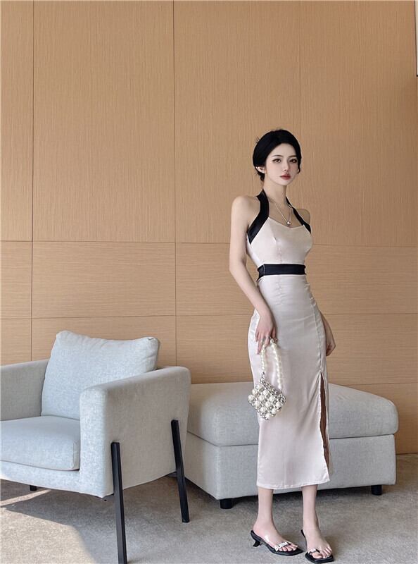 純粋な欲望ホルターネックサスペンダードレス女性の夏のハイエンドバックレススカートウエストのような気質バッグヒップスプリットミドルスカート サマー 夏物 bstraw53828050144 | beaute25