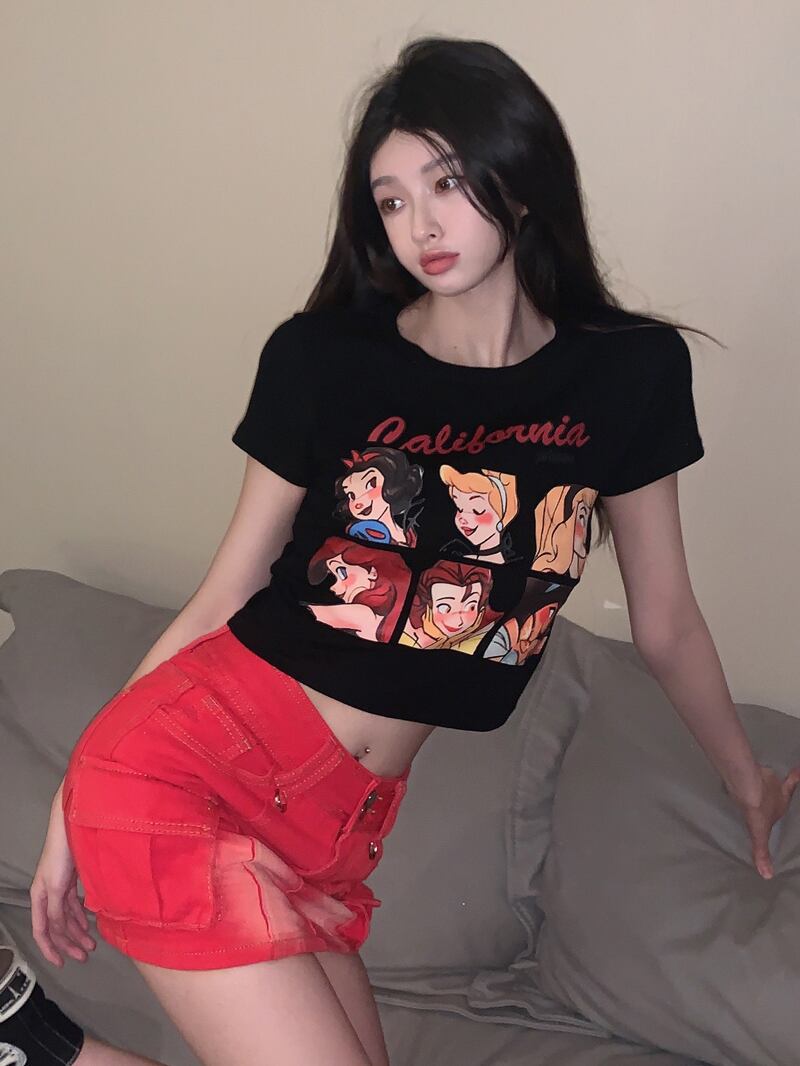 スウィートスパイス漫画プリント半袖Tシャツ2022夏バージョンかわいいスリムスリム薄いショートトップ ハーフスリーブ 大人ガーリー キュート カジュアル サマー 夏物 bstraw63964535757 | beaute25
