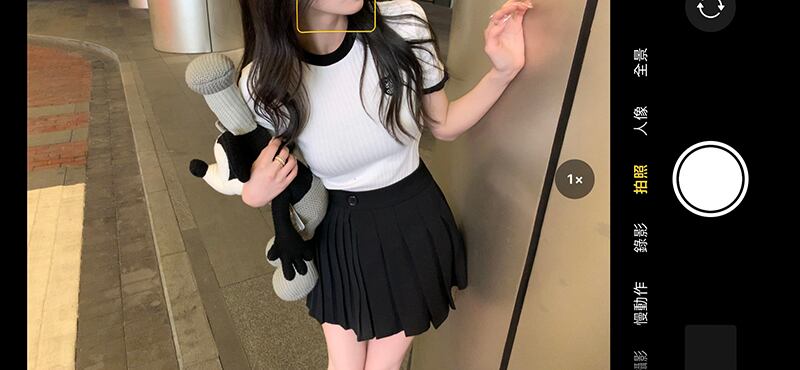 色:白いTシャツ,ブラックプリーツスカート
