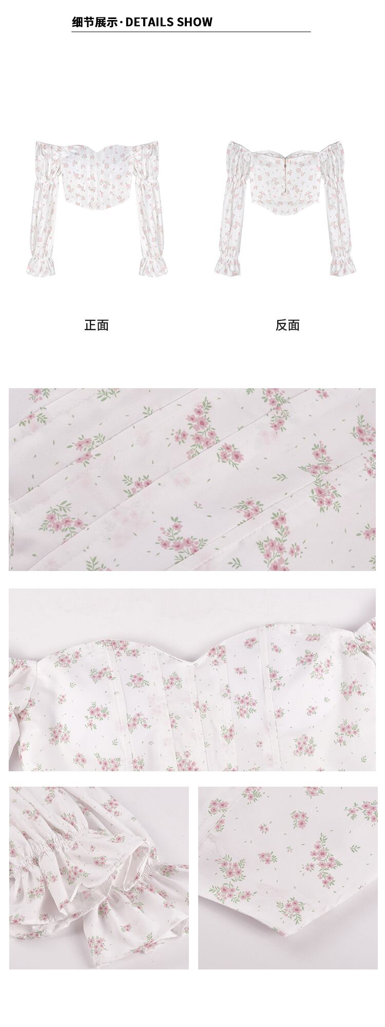 ワンショルダーパフスリーブフローラルシャツレディースサマーデザインニッチショートシャツ甘くてシックな長袖トップス ロング 大人ガーリー スウィート キュート カジュアル 夏物 花柄 bstraw99558300238 | beaute25