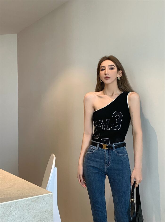 黒の傾斜ショルダーサスペンダーベスト女性インスーパーサマースウィートノースリーブインナートップとアウター着用ボトミングシャツ ブラック 大人ガーリー キュート カジュアル 夏物 bstraw65791628191 | beaute25