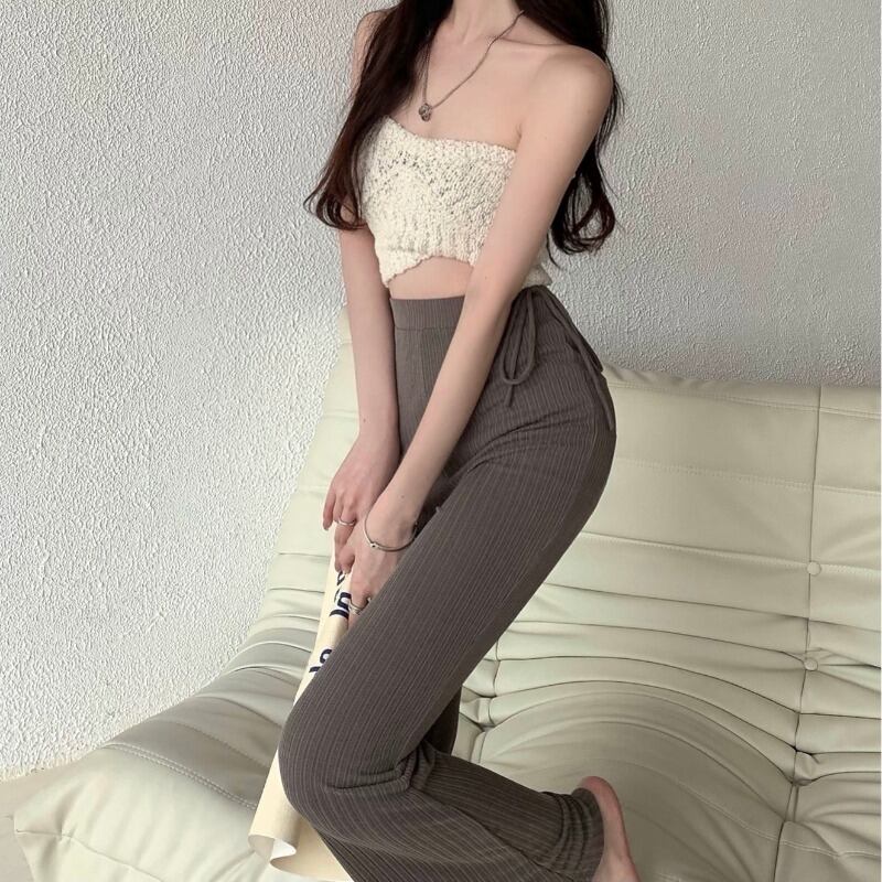 マイクログレージングアイスシルクニットカジュアルパンツレディースサマーシンパンツハイウエストルーズワイドレッグドレープモップフレアパンツ レッド 夏物 bstraw57328603033 | beaute25