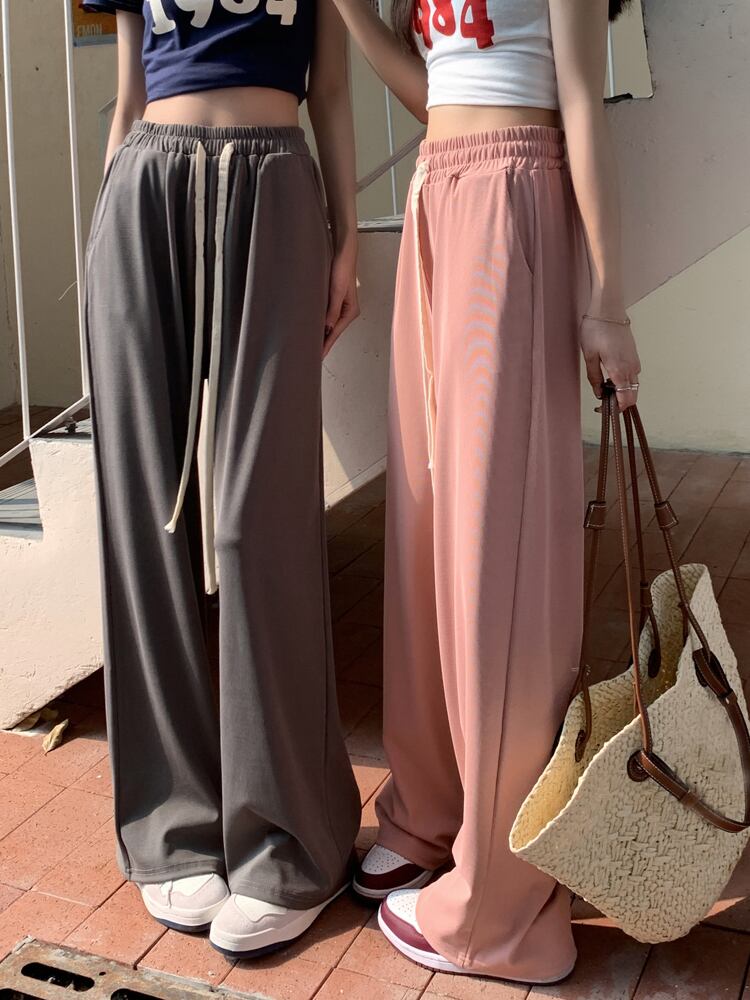アイスシルクカジュアルパンツレディースサマーシンドローストリングストレートチューブモップパンツドレープオールマッチハイウエストシンワイドレッグパンツ 夏物 bstraw68600587360 | beaute25
