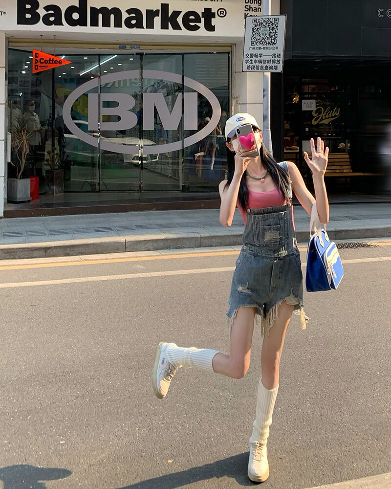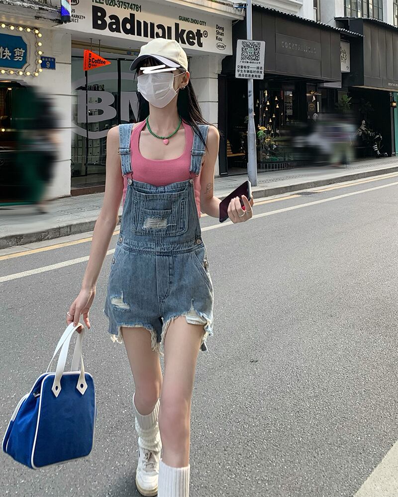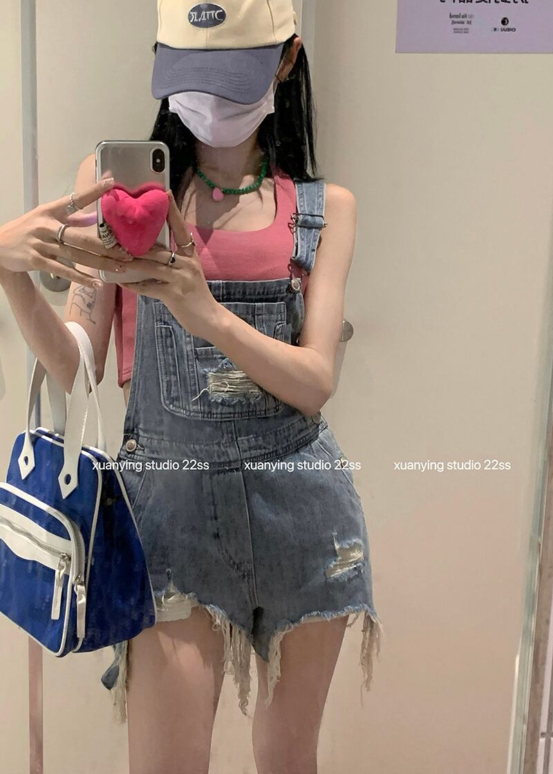 ローエッジオールマッチストラップデニムショーツレディースサマーブルーデザインニッチハイウエストスリムワンピースストレートパンツ ハイウェスト 夏物 ブルマー bstraw75034232017 | beaute25