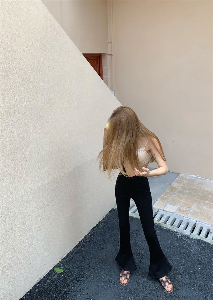 ブラックハイウエストスリットカジュアルパンツレディースサマースモールフィートシンオールマッチデザインセンスニッチマイクロフレアパンツパンツ 夏物 bstraw67507584167 | beaute25
