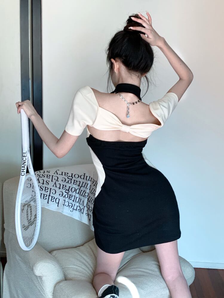 ポロカラードレス女性の甘くてウエストレスの背中の開いた気質スカート夏のデザインセンスニッチショートスカートツーピースセット 大人ガーリー スウィート キュート カジュアル サマー 夏物 bstraw30566377334 | beaute25