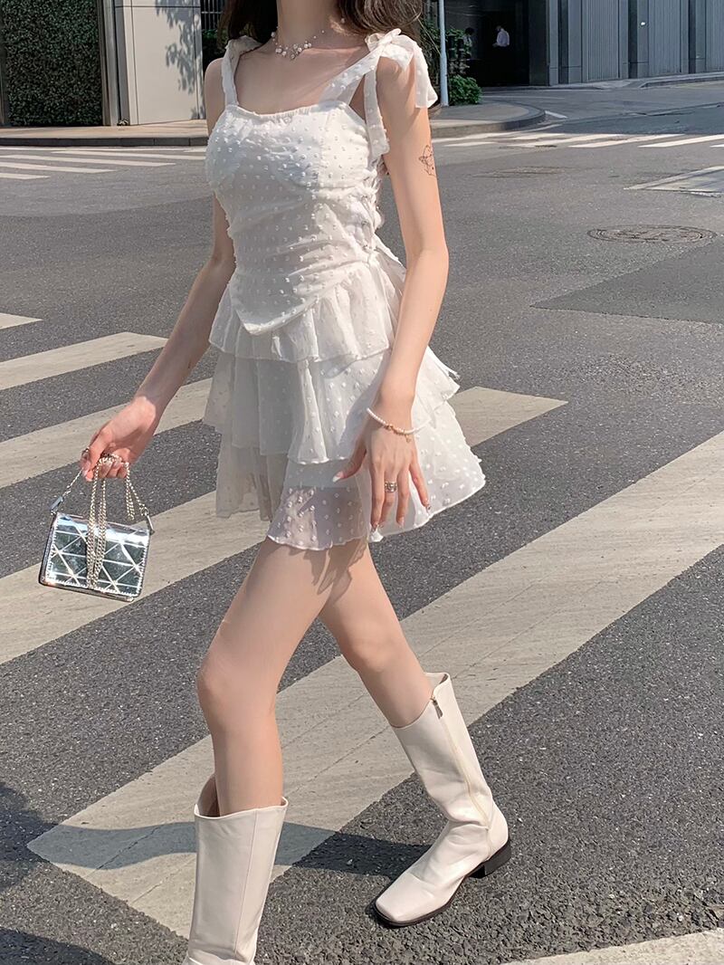 純粋な欲望のサスペンダードレス女性の夏の甘いウエスト気性スカートデザインセンスニッチケーキAラインスカート 大人ガーリー スウィート キュート カジュアル サマー 夏物 bstraw40432010085 | beaute25