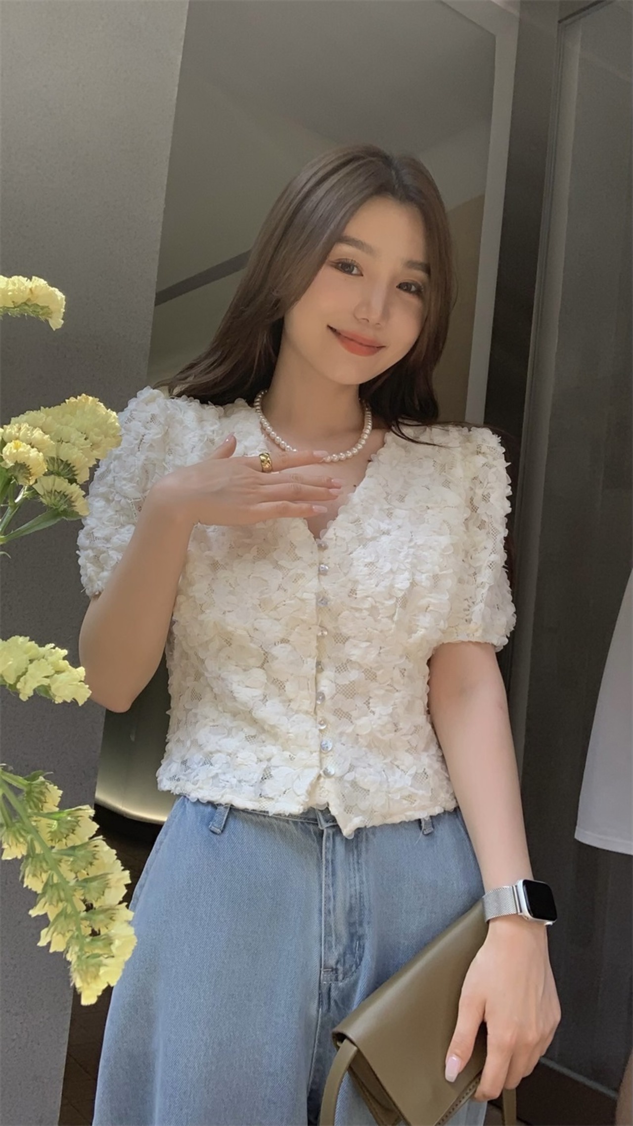 フランスの甘いVネックシャツ女性の2022年夏の新しいシックなニッチ半袖レースシャツボトミングトップ 大人ガーリー スウィート キュート カジュアル サマー 夏物 bstraw65389110943 | beaute25