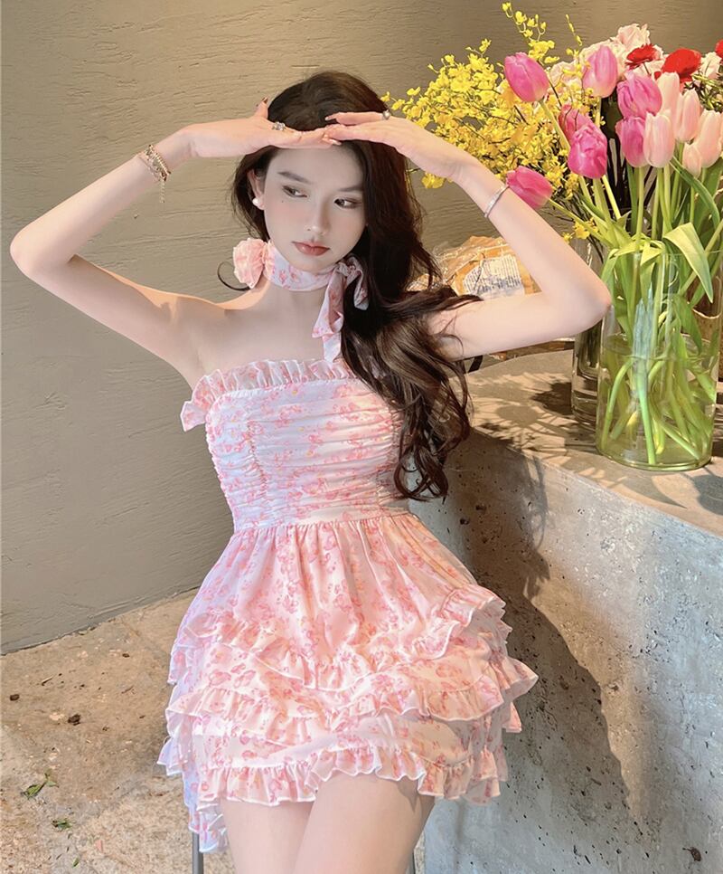 甘い花柄チューブトップドレス女性の夏の優しい風セクシーなピンクのウエストスリム初恋プリンセスショートスカート 大人ガーリー スウィート キュート カジュアル サマー 夏物 bstraw96661368784 | beaute25