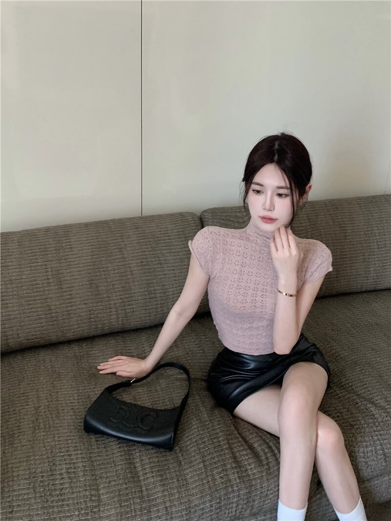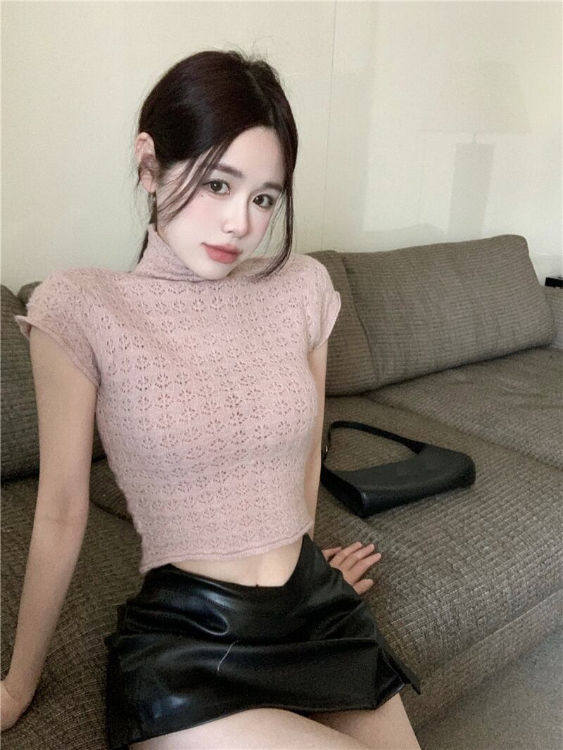 甘くてスパイシーな優しい風の薄いニットセーター女性の2022年夏の新しいピンクの純粋な欲望ハーフタートルネックスリム半袖トップ 大人ガーリー スウィート キュート カジュアル サマー 夏物 ピュア bstraw48285106649 | beaute25