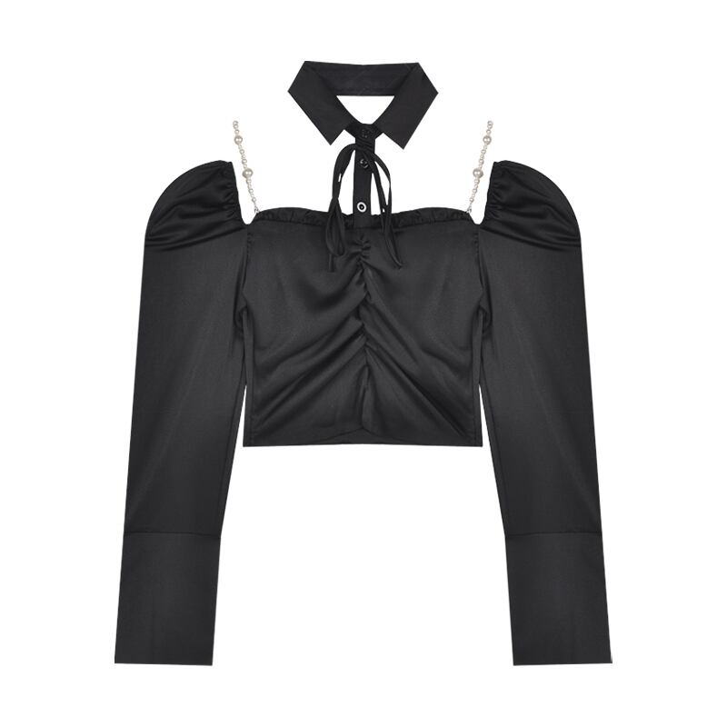 黒のシャツの女性の夏のデザインセンスニッチシャツ2022新しいオフショルダースリムセクシーな半袖トップ ショート ロング ブラック サマー 夏物 bstraw51954198353 | beaute25