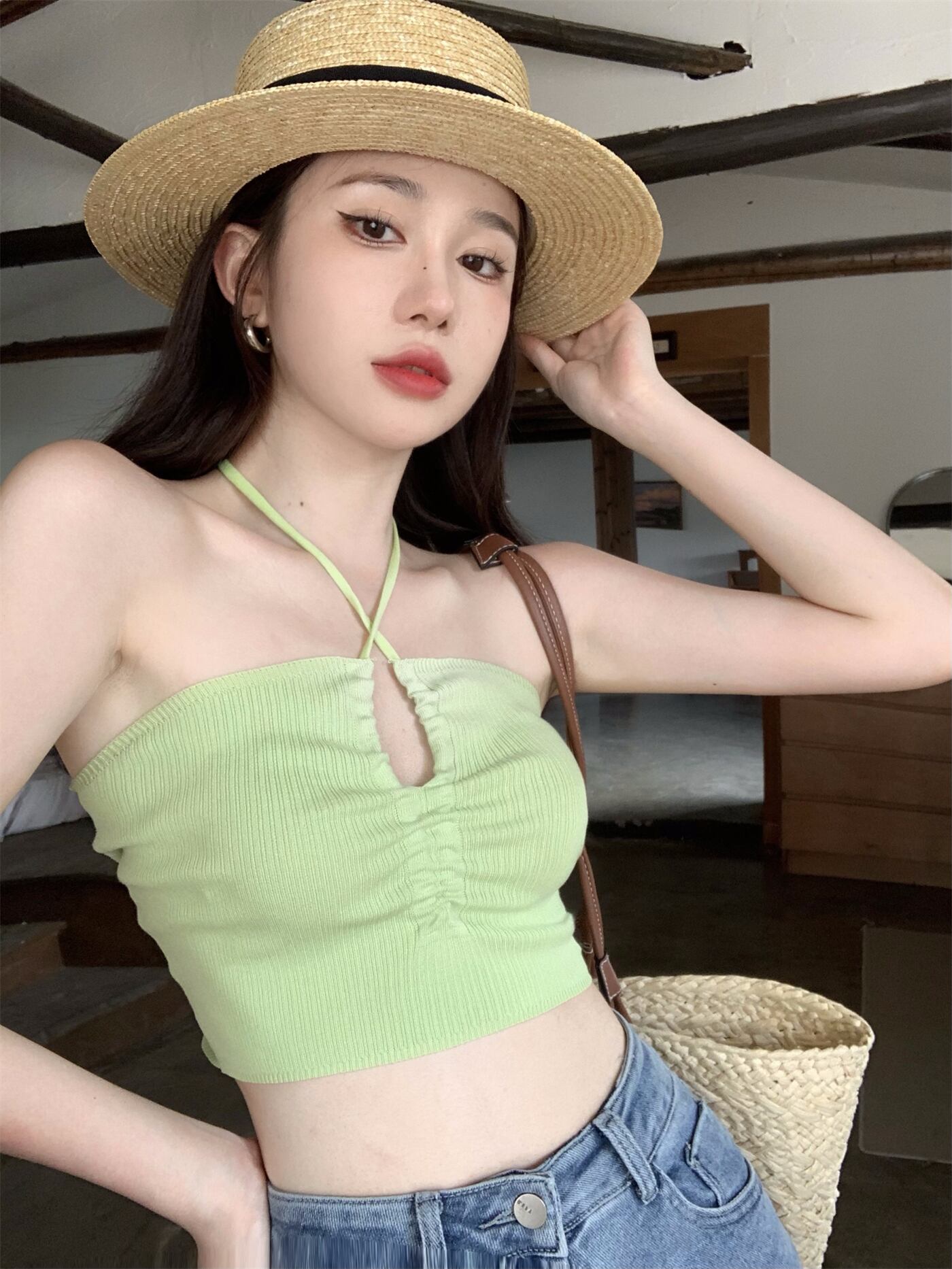 純粋な欲望セクシーなクロス小さなキャミソールの女性は夏の短い甘いハンギングネックトップスボトミングシャツを着ています ショート 大人ガーリー スウィート キュート カジュアル サマー 夏物 bstraw20039174840 | beaute25