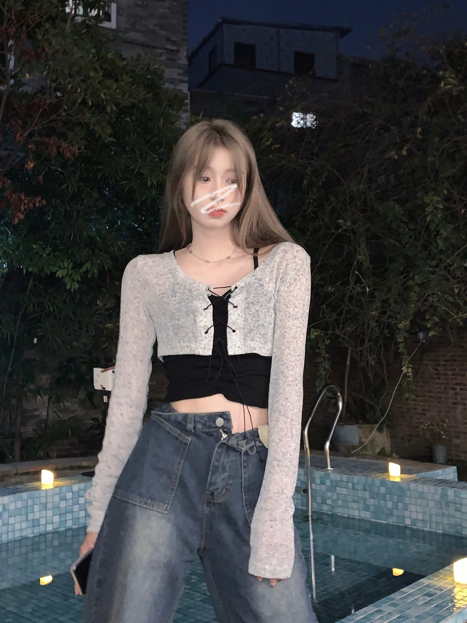 スウィートスパイスニットTシャツレディース薄手日焼け止めボトムシャツツーピースサマースリムフィット長袖アウターショートトップ ロング 大人ガーリー キュート カジュアル 夏物 bstraw99150926370 | beaute25