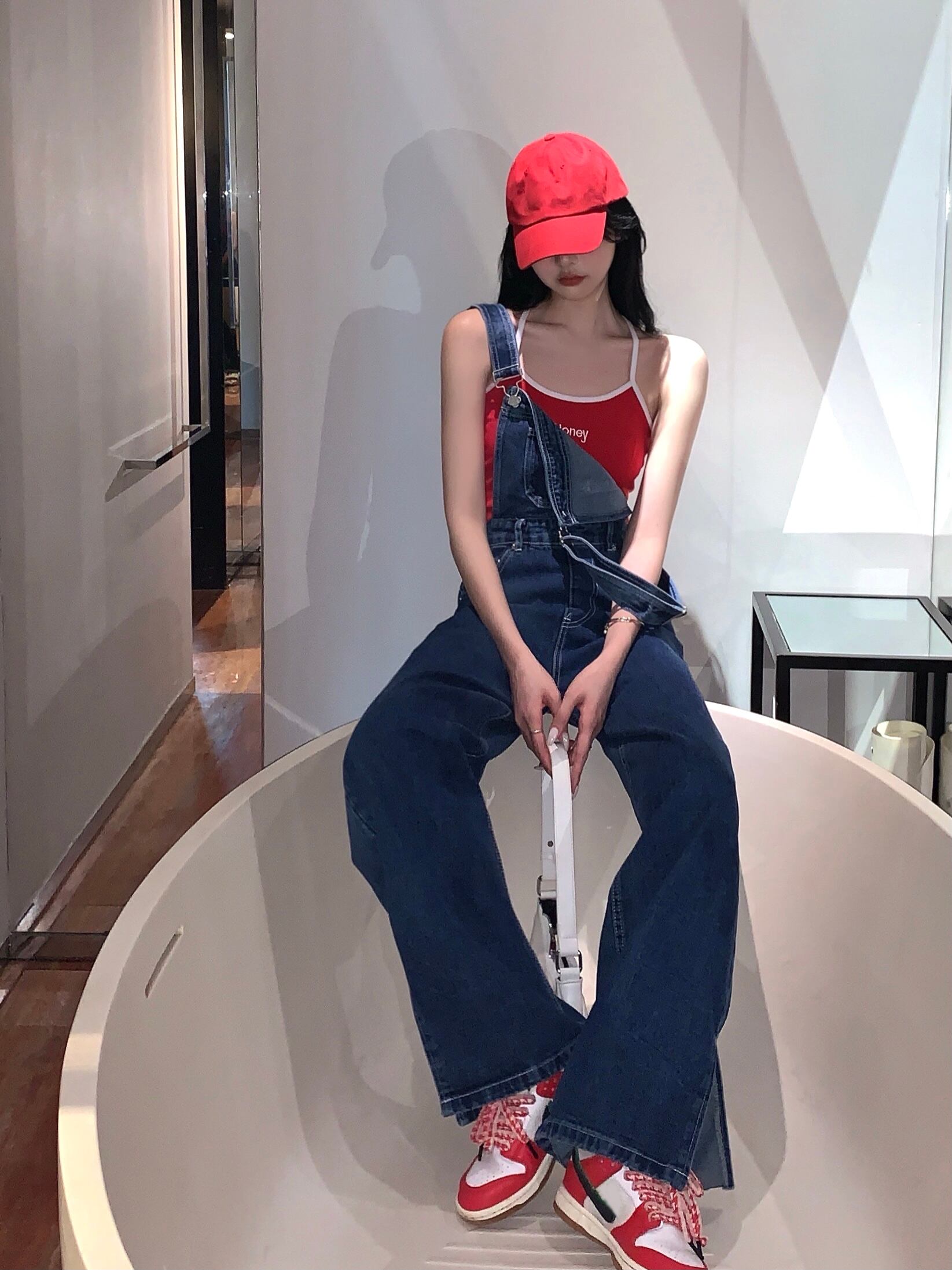 レトロデニムオーバーオールレディースハイウエストルーズワイドレッグモップパンツサマーデザインニッチスリットパンツ ハイウェスト 夏物 ワイドパンツ bstraw65228382121 | beaute25