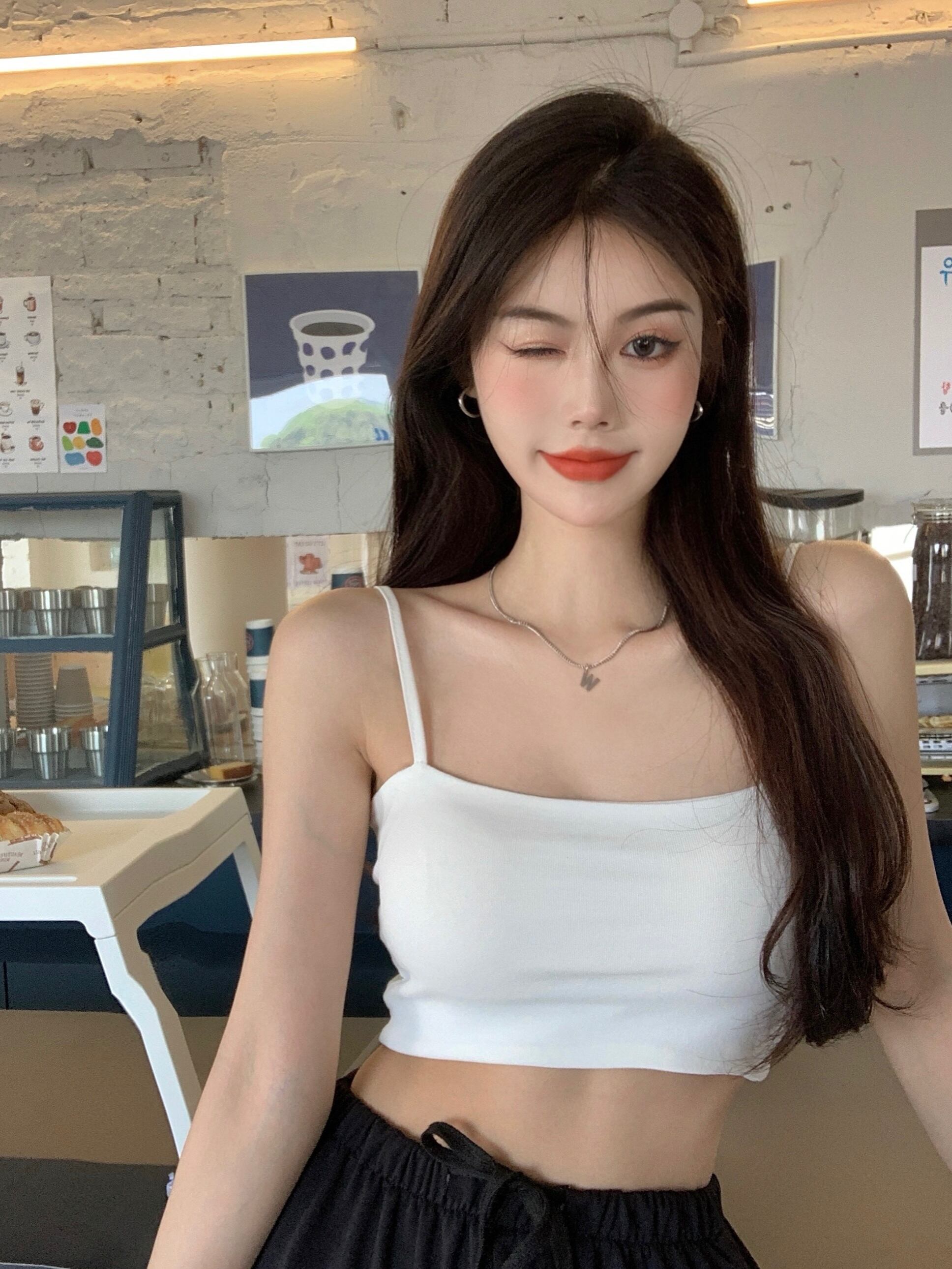 キャミソールベスト女性の夏の短いへそチューブトップセクシーなタイトなトップスは、内側と外側に白いボトムスのシャツを着ています ショート ホワイト サマー 夏物 bstraw80611489920 | beaute25
