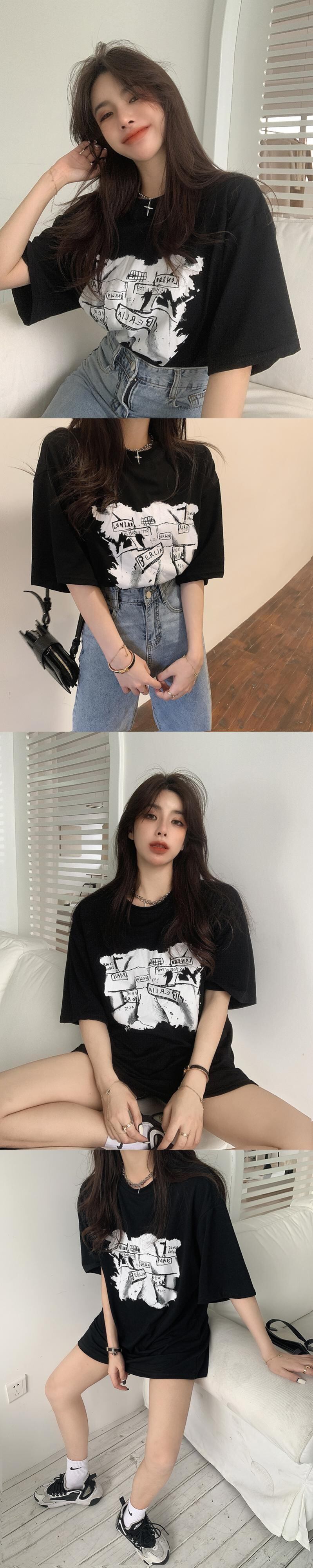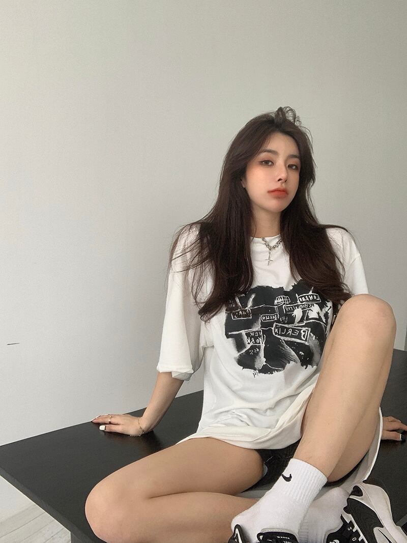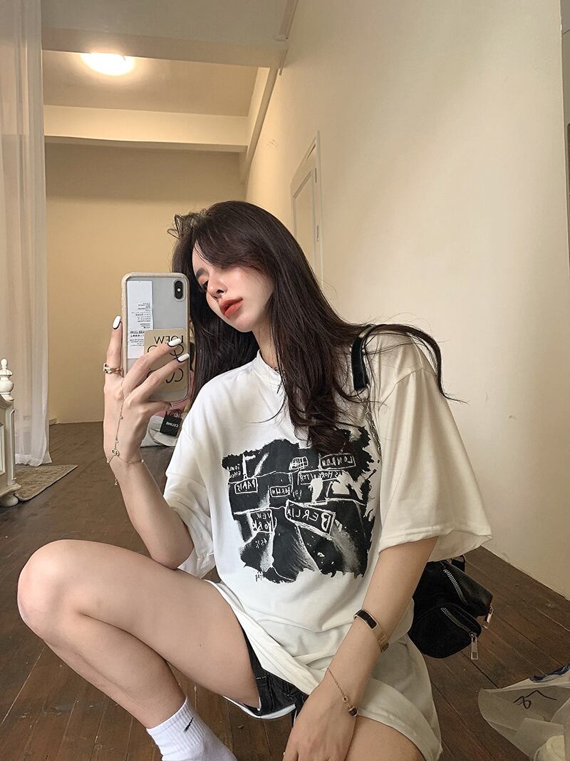バージョン半袖Tシャツ女性の2022年夏の新しいラウンドネックカジュアルルーズプリントデザインセンスニッチトップインタイド サマー 夏物 Oネック bstraw48786168395 | beaute25