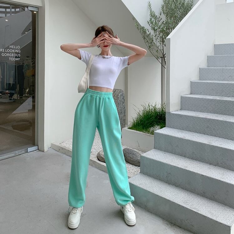 スポーツスウェットパンツレディースサマーハイウエストグリーンシンルーズストレートドローストリングパンツカジュアルワイドレッグパンツ ハイウェスト 夏物 ワイドパンツ bstraw4439789861 | beaute25