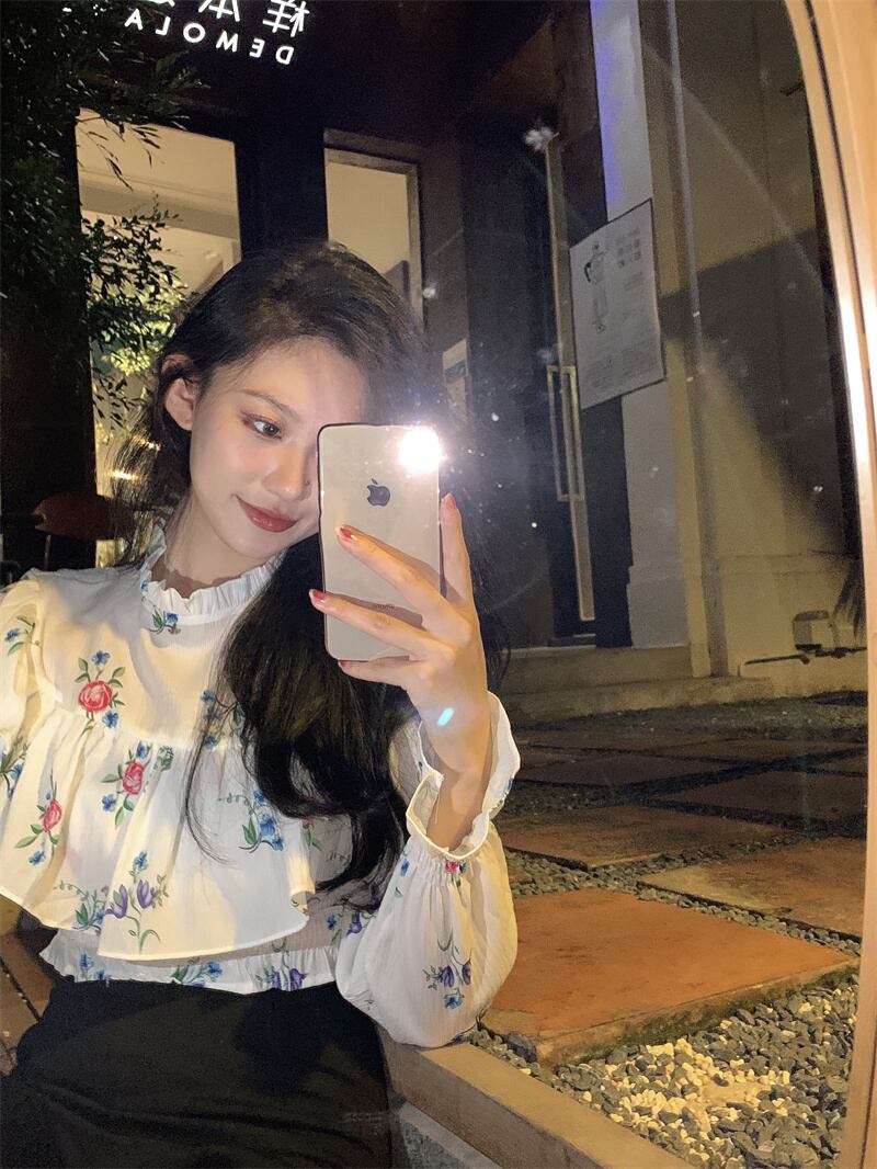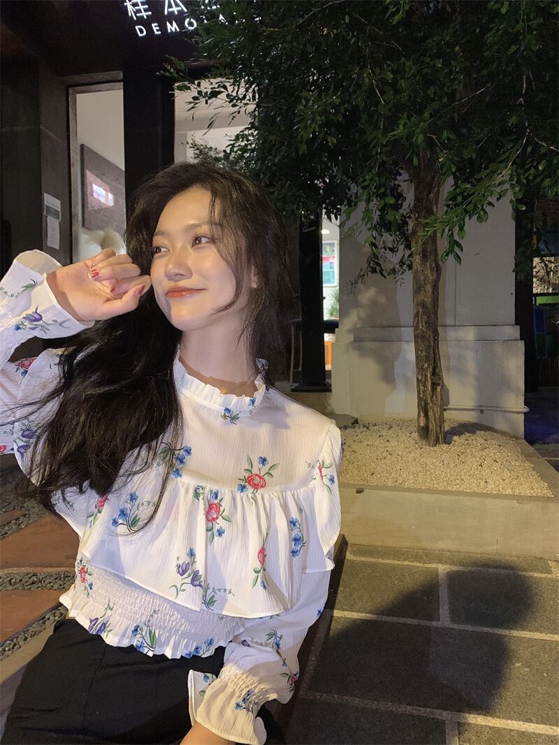 フリルシャツレディースデザインセンスニッチフレンチスウィートでシックなフローラルシャツ2022年夏の新作トップス 大人ガーリー キュート カジュアル サマー 夏物 花柄 bstraw50013449479 | beaute25