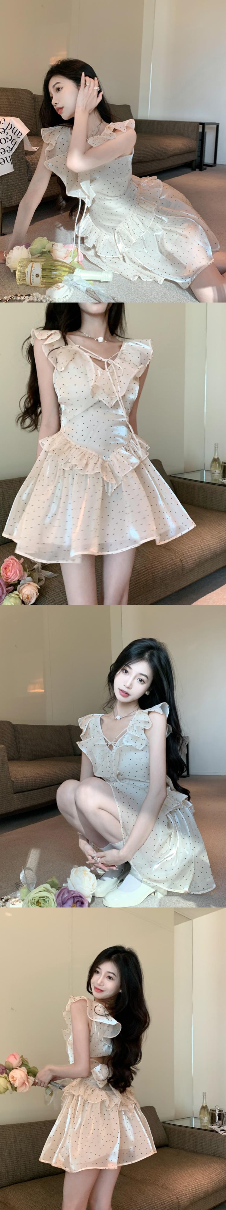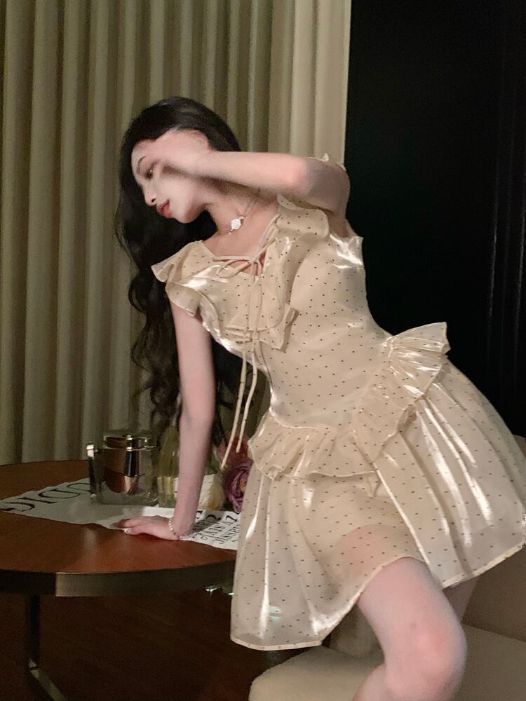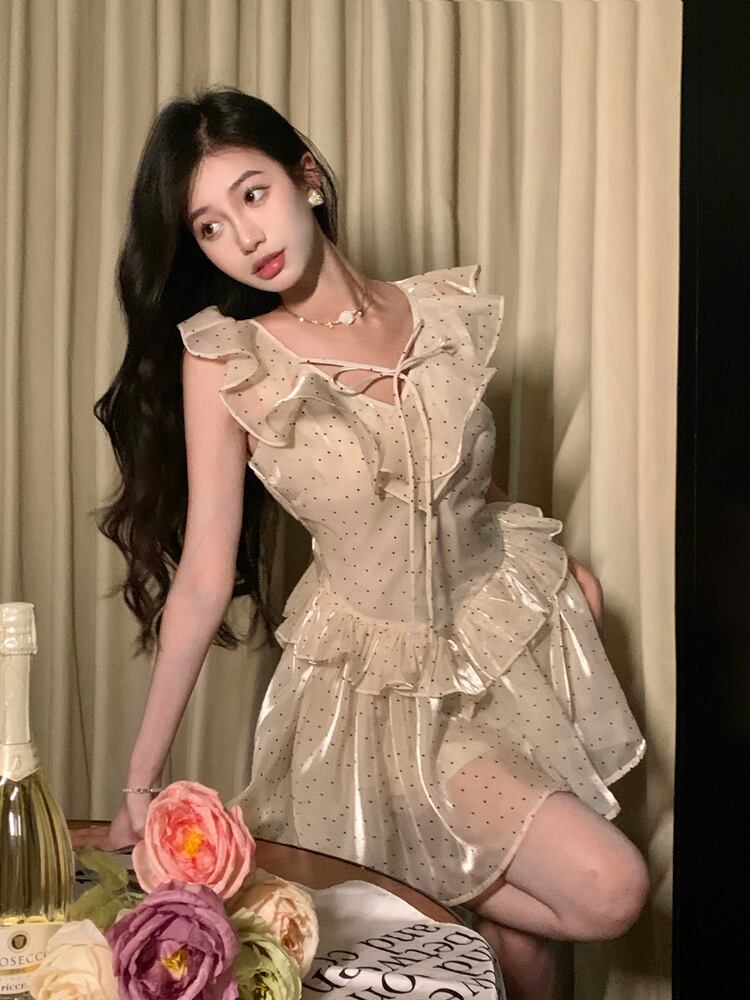 純粋な欲望フリル水玉ドレス女性の夏のデザイン小さなフランスの甘くてスパイシーなウエストケーキショートスカート 大人ガーリー スウィート キュート カジュアル サマー 夏物 bstraw53349820220 | beaute25