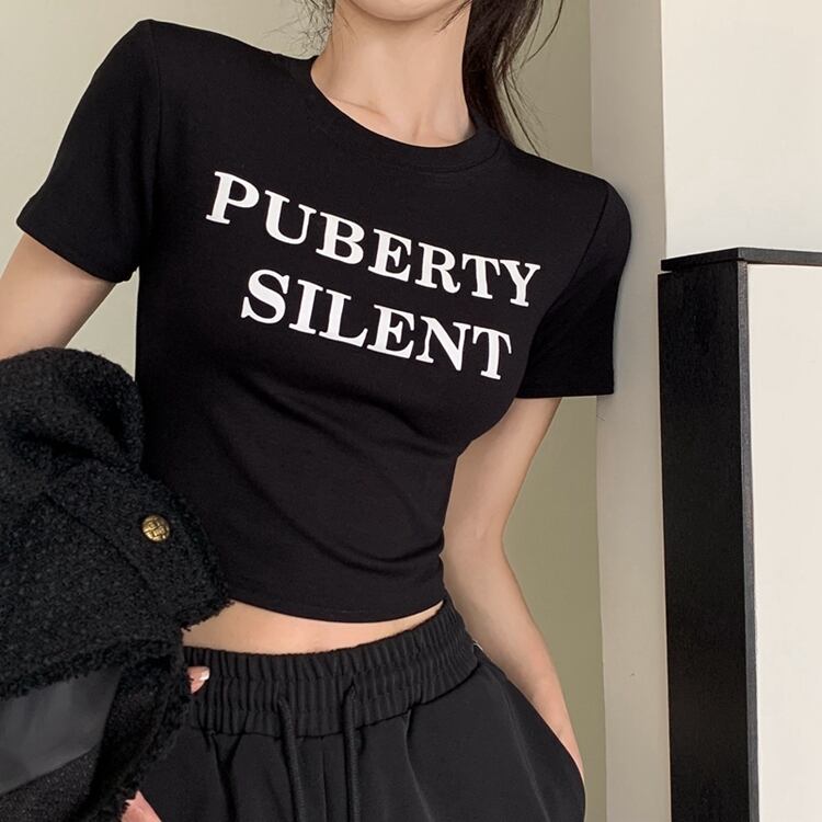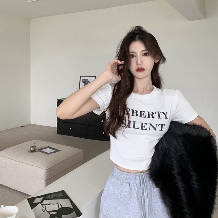 香港スタイルのTシャツレディースインスティッドタイトフィット半袖ショルダーパッド印刷ボトミングシャツ2022年夏新しいインナーショートトップ サマー 夏物 bstraw18523265694 | beaute25