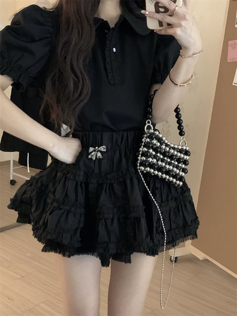ブラックハイウエストスカートレディース2022夏新作フレンチスタイル細いAラインショートスカートアンブレラスカートふわふわプリーツスカート サマー 夏物 bstraw47432532346 | beaute25