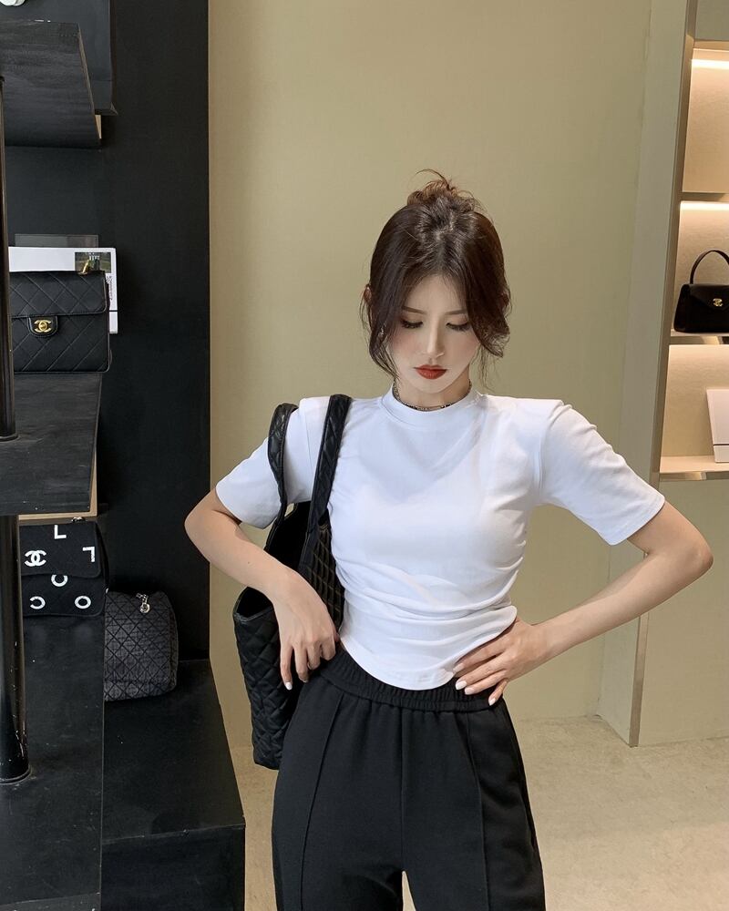 無地のスリムな半袖Tシャツ女性の2022年夏の新しい甘い小さなラウンドネックショートトップインタイド 大人ガーリー スウィート キュート カジュアル サマー 夏物 Oネック ソリッドカラー bstraw77726035183 | beaute25