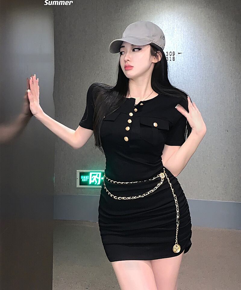 半袖スリムドレスのバージョン女性の夏の計画ラウンドネックウエストスリミングデザインニッチパッケージヒップショートスカート サマー 夏物 Oネック bstraw65717247874 | beaute25