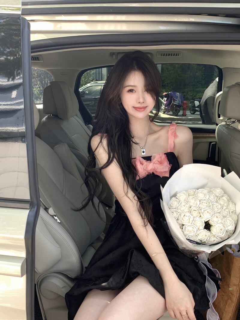 黒の背中の開いたサスペンダードレス女性の夏の純粋な欲望の弓セクシーなウエスト細いAラインの短いスカート ショート ブラック リボン サマー 夏物 ピュア bstraw10510780789 | beaute25