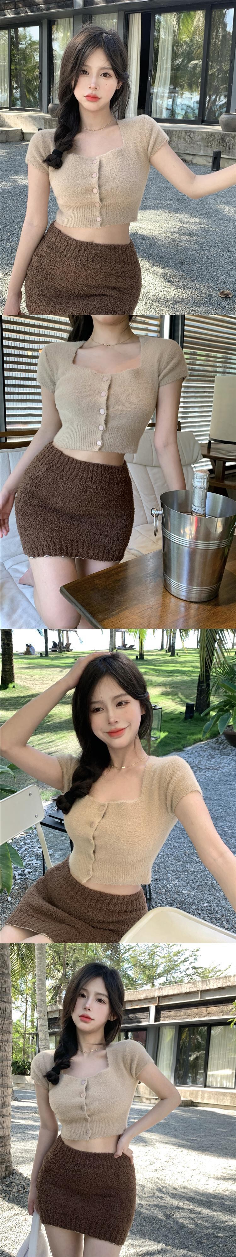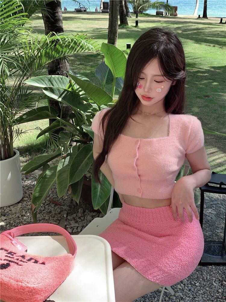 ホットニットカーディガンレディース2022年夏新しい甘くてスパイシーなスタイルの半袖ハイウエストタイトフィットショートトップ 大人ガーリー スウィート キュート カジュアル サマー 夏物 bstraw68178116319 | beaute25