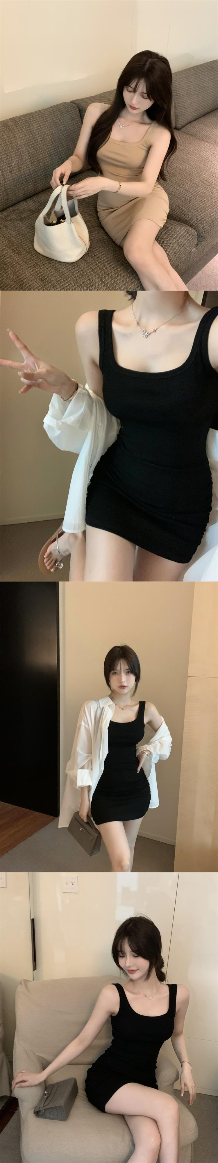 ストラップとヒップのショートスカートを備えた無地のスクエアカラースリムサスペンダードレス女性の2022年夏の新バージョン サマー 夏物 ソリッドカラー スクウェア bstraw2205923124 | beaute25