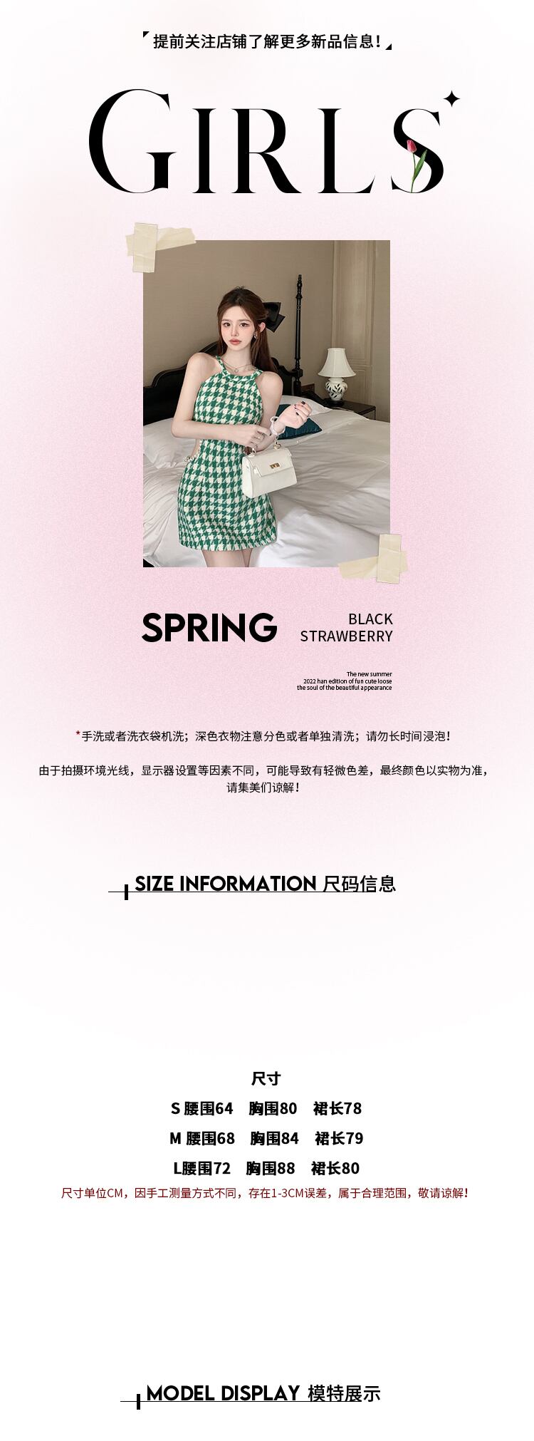 緑の千鳥格子のサスペンダードレス女性の夏フランスの気質ノースリーブバッグヒップハンギングネックウエストウエスト薄いスカート サマー 夏物 グリーン bstraw70756344702 | beaute25