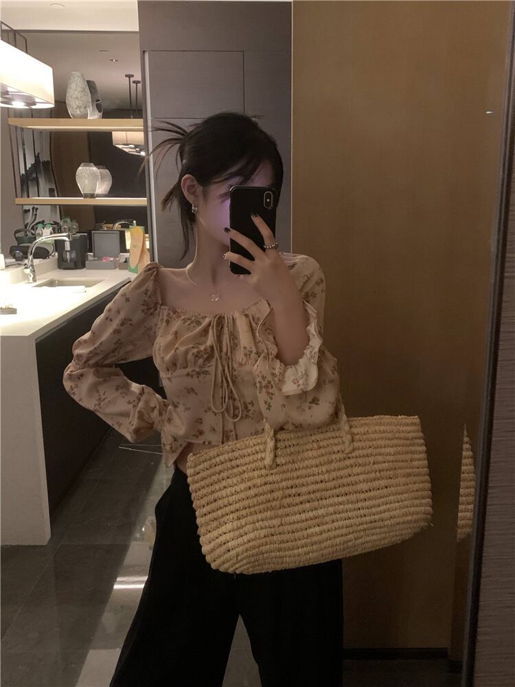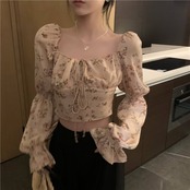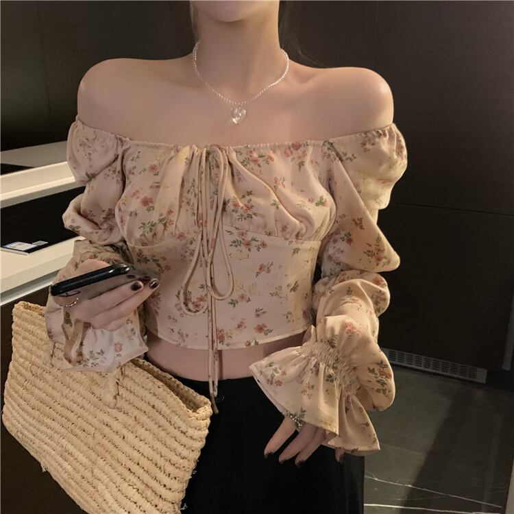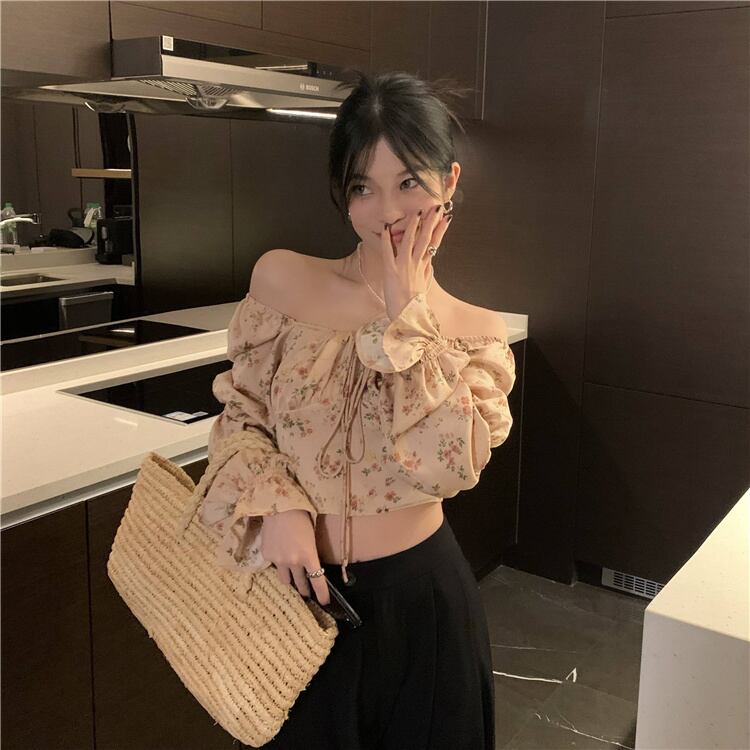 ワンショルダーフレンチピュア欲望スウィートフローラルシャツ女子2022年夏新作シャツスリム長袖ショートトップ ロング 大人ガーリー キュート カジュアル サマー 夏物 花柄 bstraw88125892471 | beaute25