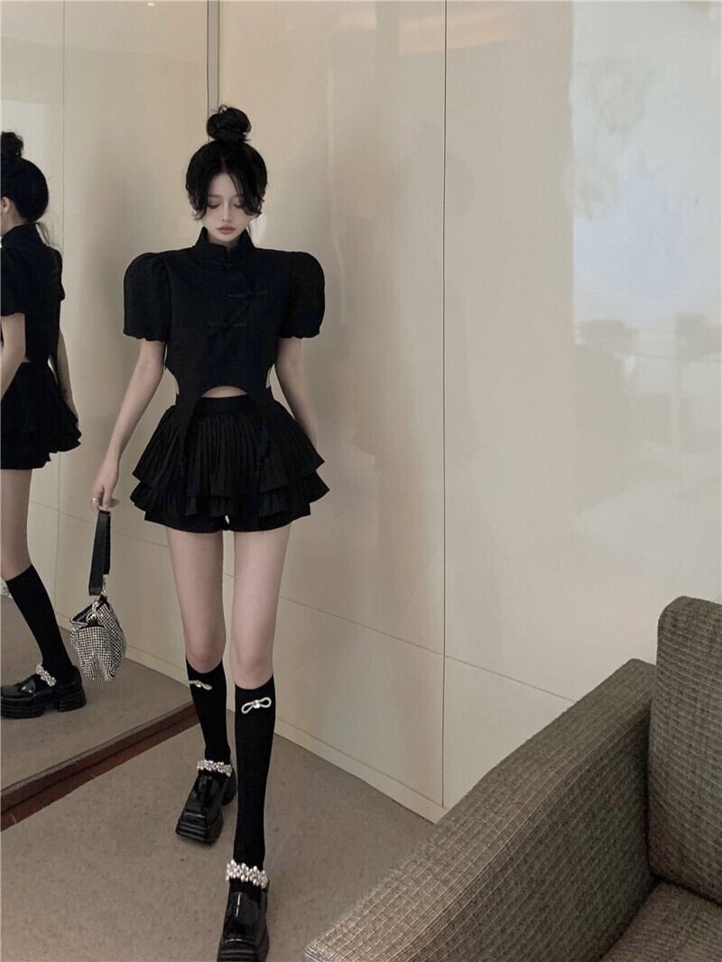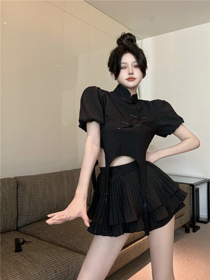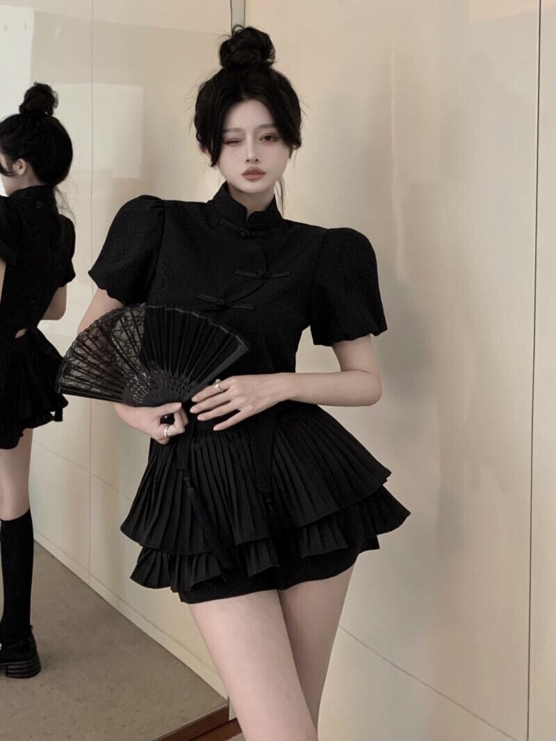 改良されたチャイナドレスの女性の2022年夏の新しいインタイドカントリースタイルの甘いシックな気質半袖トップ 大人ガーリー スウィート キュート カジュアル サマー 夏物 bstraw97855712761 | beaute25