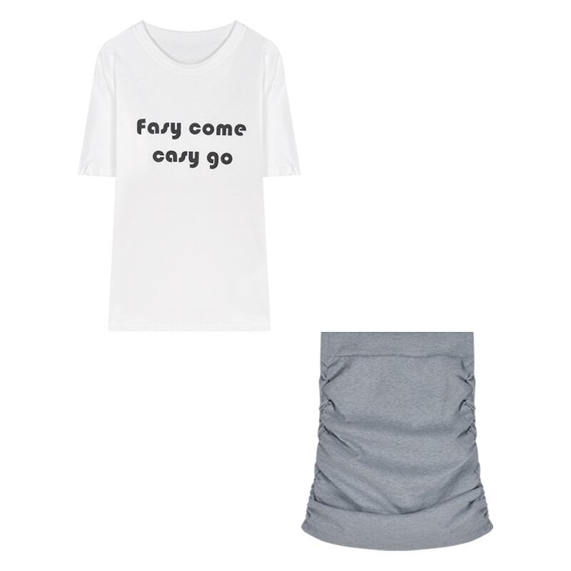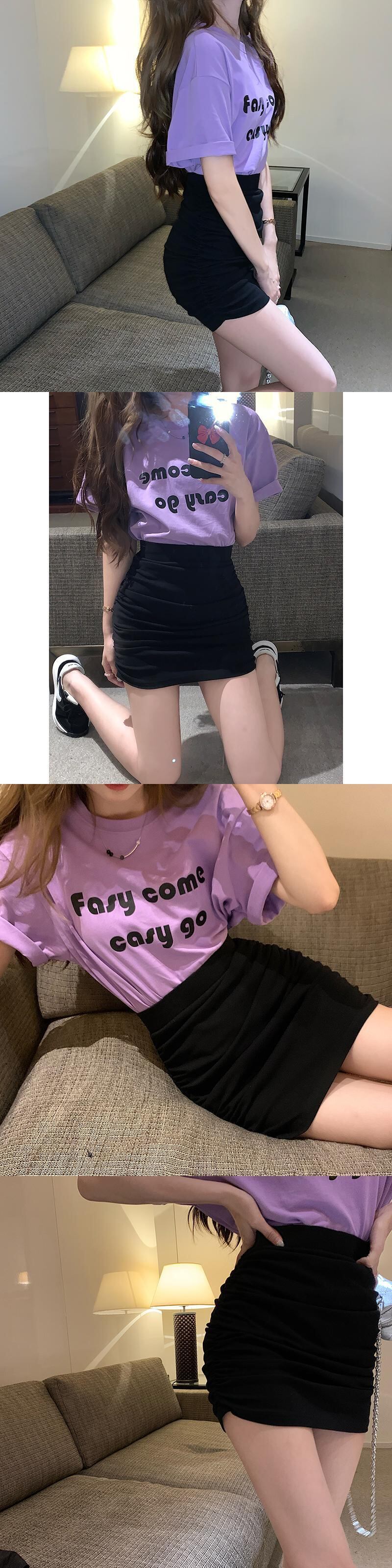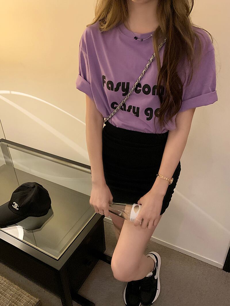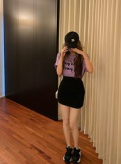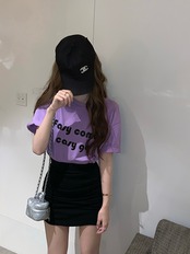 色:パープルTシャツ,白いTシャツ,黒スカート,グレースカート