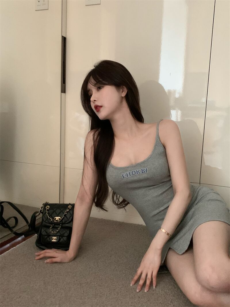 グレーセクシースリングドレスレディースサマーピュアデザイアスウィートホットガールスモールウエストショーシンバッグヒップショートスカート 大人ガーリー キュート カジュアル 夏物 bstraw9437684735 | beaute25