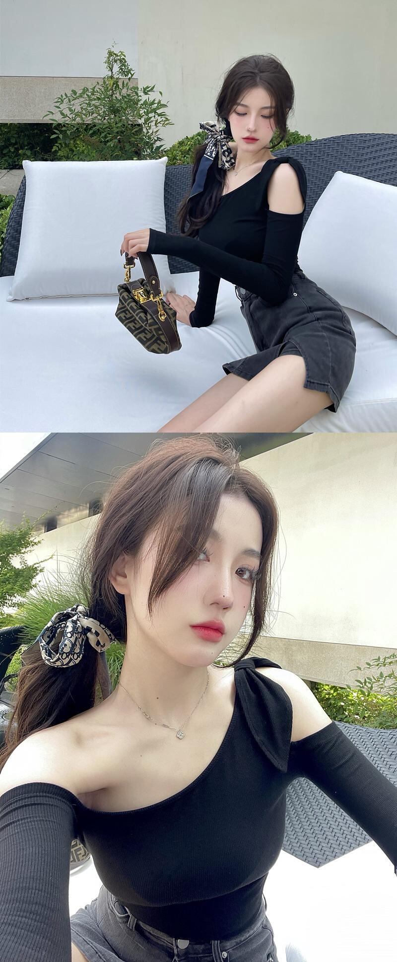 Tシャツレディーススラントショルダーオフショルダーデザインセンスニッチセクシータイトフィット長袖ボトミングシャツサマーストラップトップ ロング 夏物 bstraw81970255658 | beaute25