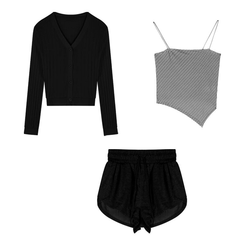 色:青いサスペンダー,ミントグリーンの小さなスリング,小さな黒いスリング,白いカーディガン,ブラックカーディガン,グリーンカーディガン,ショートパンツブラック,ショーツグレー