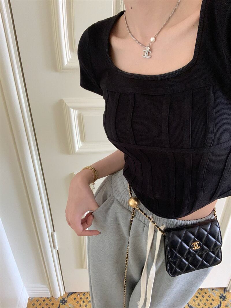 ホット不規則なフィッシュボーン半袖Tシャツ女性の2022年夏の新バージョンスクエアカラースリムボトミングシャツトップ サマー 夏物 スクウェア bstraw24503717862 | beaute25