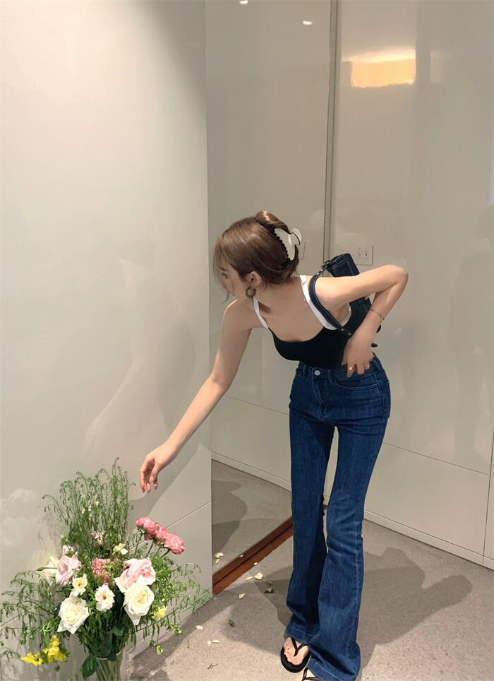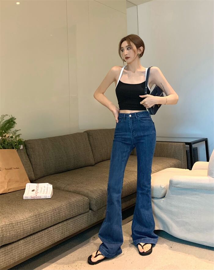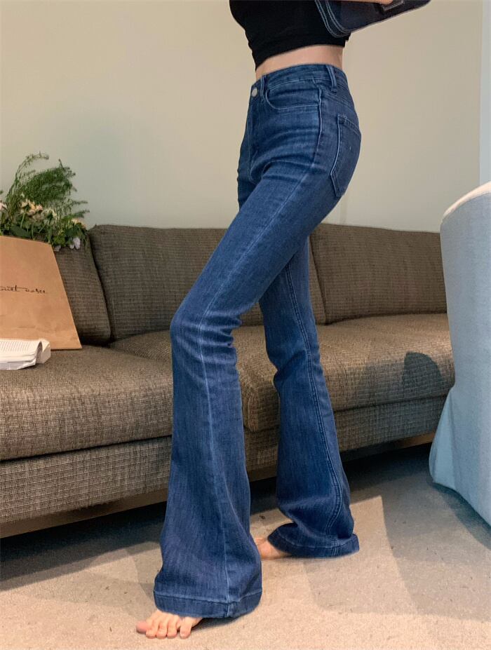 レトロなストレートジーンズの女性の夏の薄いセクションの小さな背の高いウエストは薄いモップでオールマッチのマイクロフレアパンツパンツでした サマー 夏物 bstraw68659217921 | beaute25