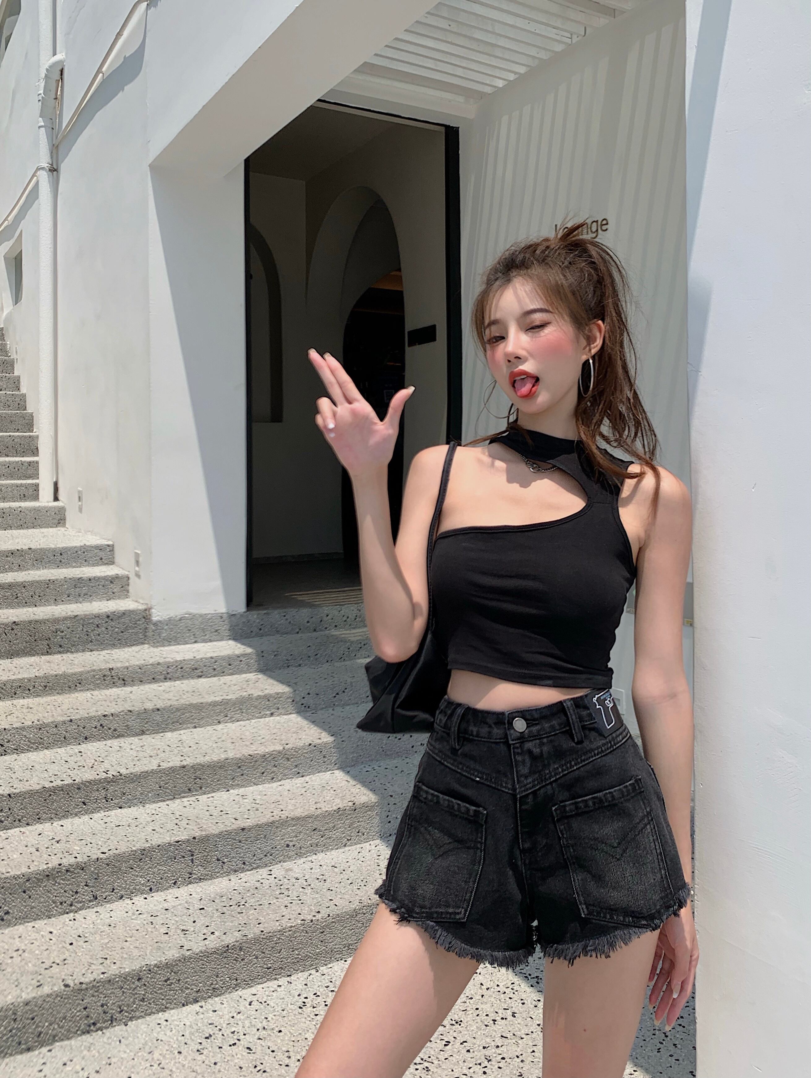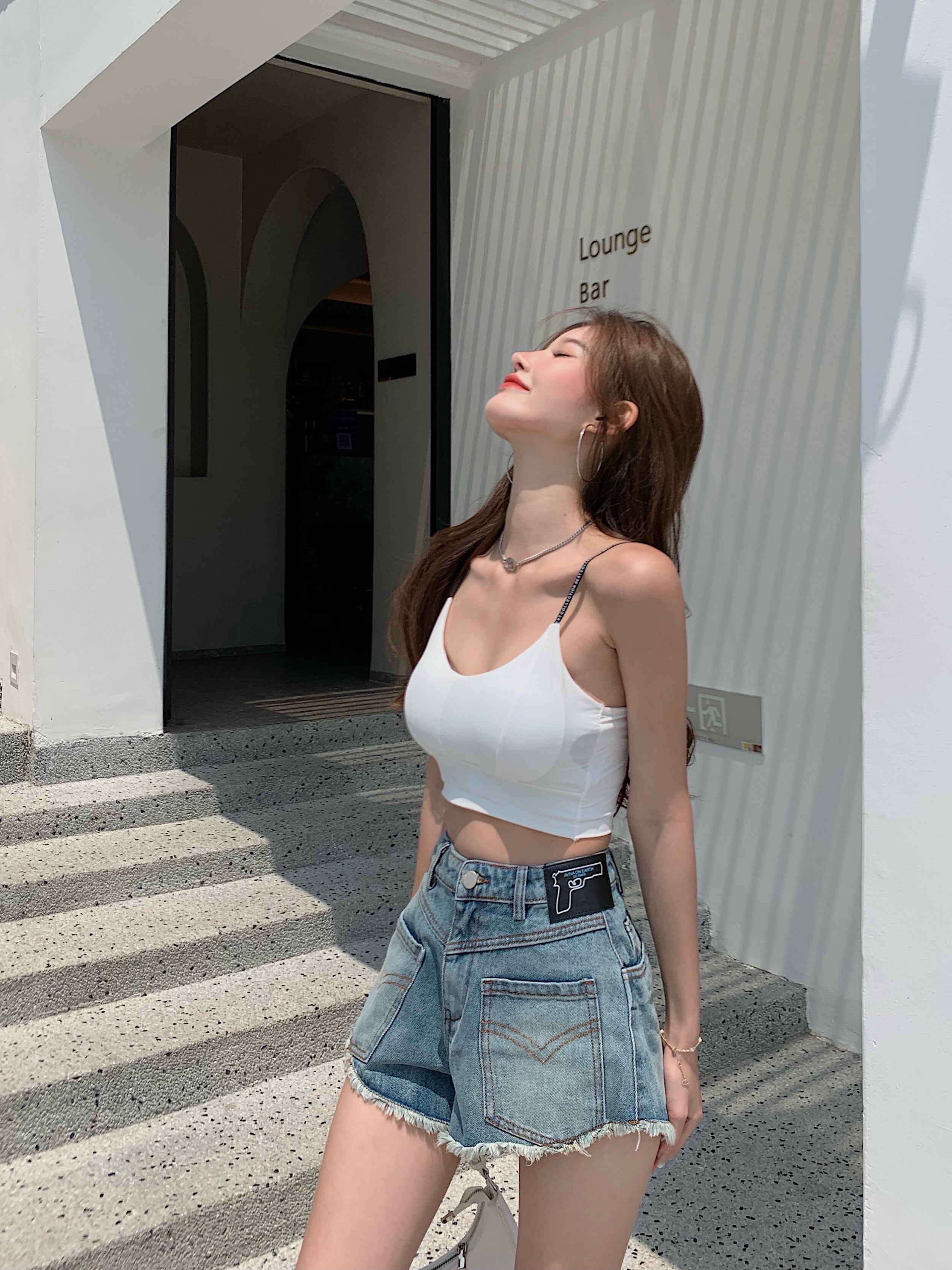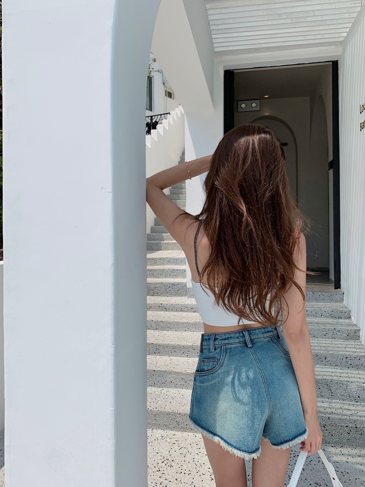 ウォッシュドローエッジジーンズレディースサマーパンツルーズハイウエストシンオールマッチストレートワイドレッグショーツトレンディ ハイウェスト 夏物 ブルマー bstraw86794847347 | beaute25