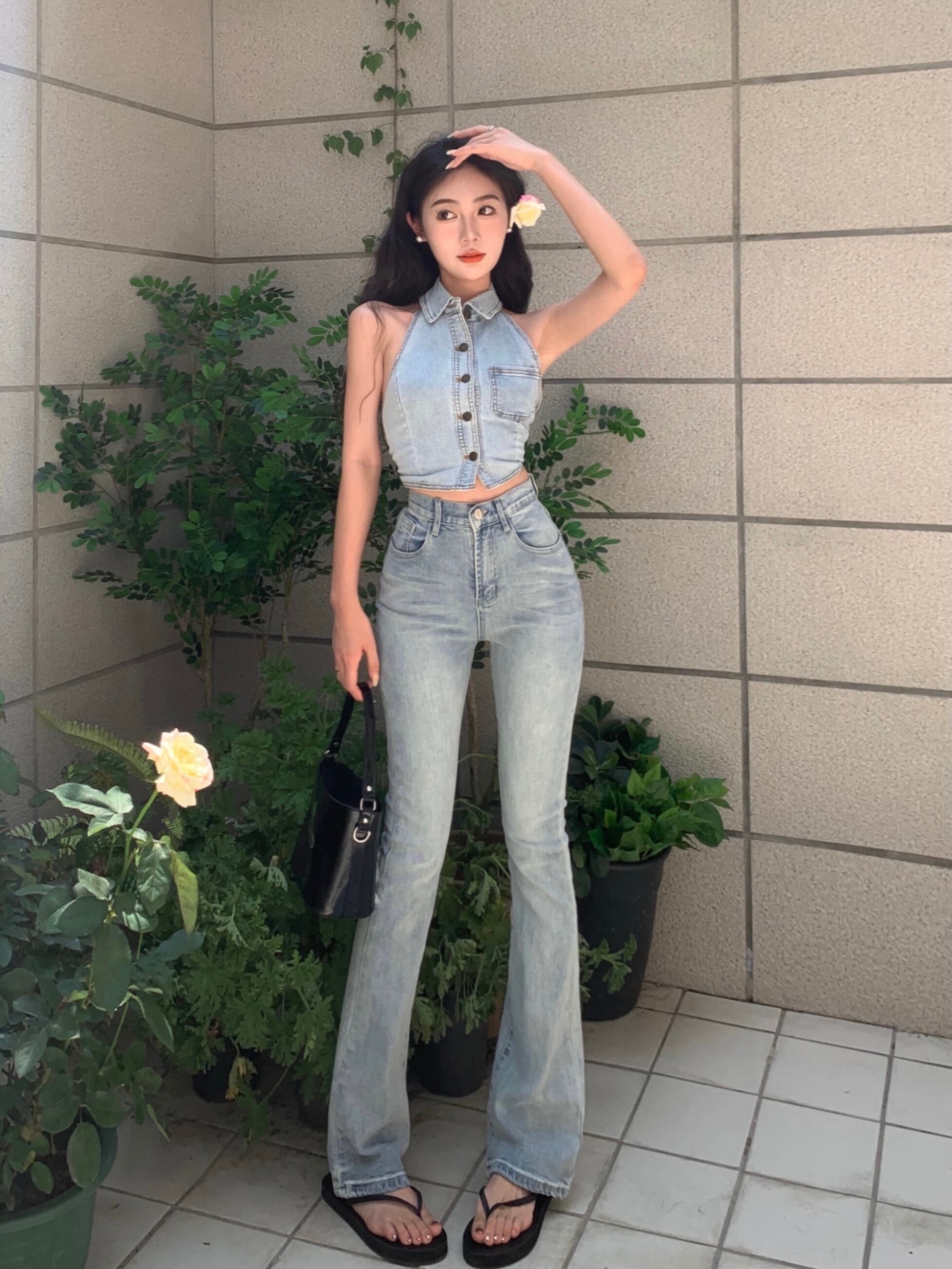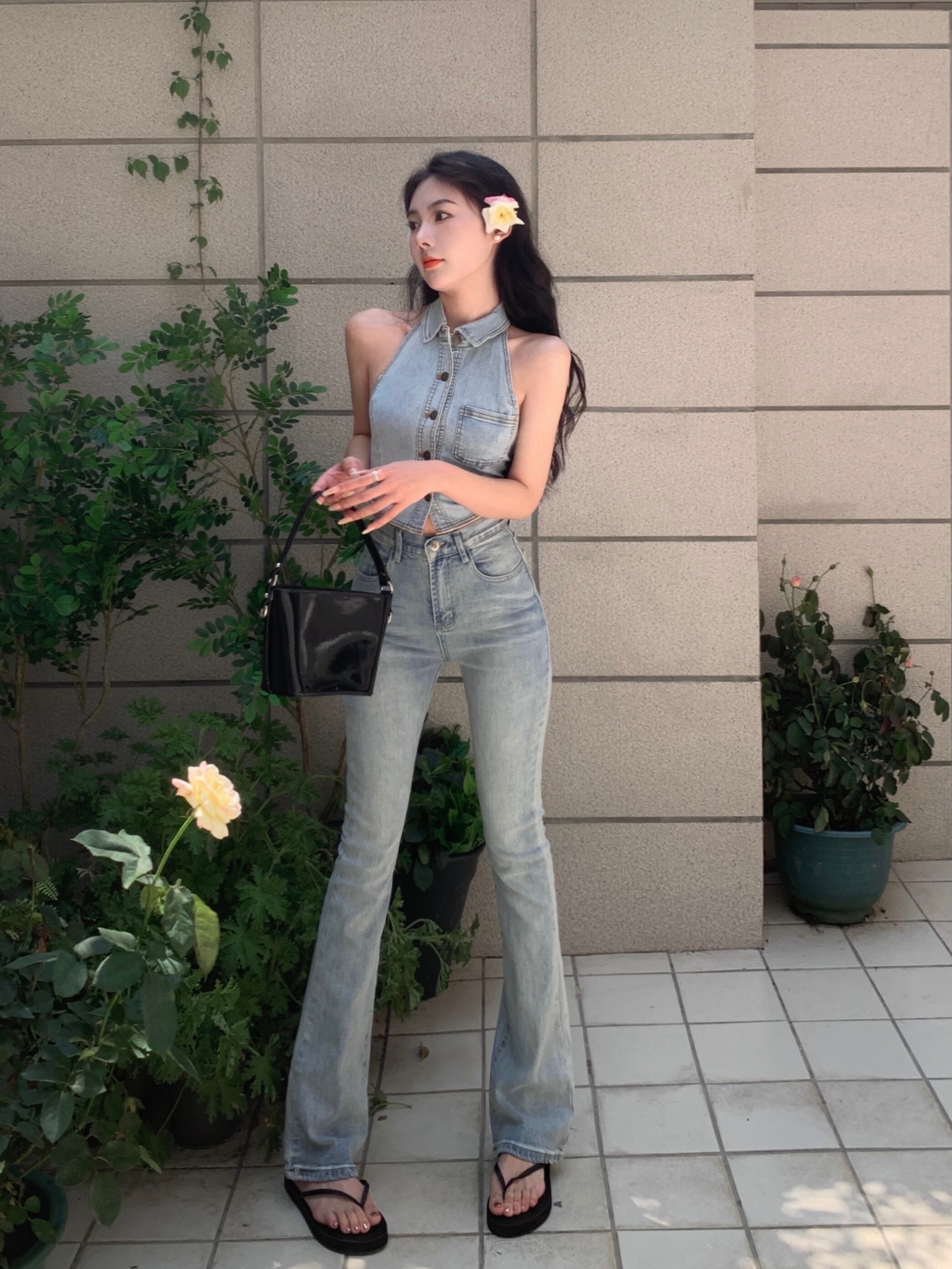 ホットホルターネックオフショルダーデニムスモールキャミソールレディースサマーピュア欲望風伸縮性タイトフィットインナートップアウター エラスティック 夏物 bstraw99561641707 | beaute25